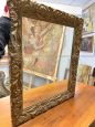 Specchiera da parete antica rettangolare dorata e finemente lavorata con intagli floreali, in buono stato generale, con specchio coevo. Miisure 62 x 52 cm, Italia XIX secolo.