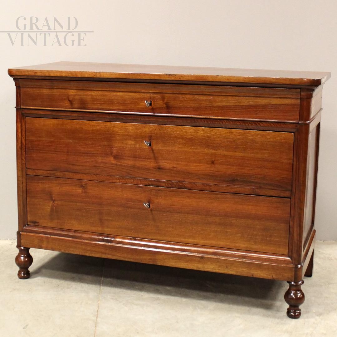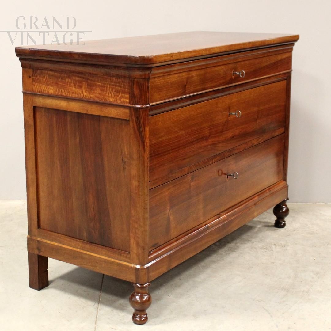 Antico comò cassettiera Carlo X in noce '800 Italia