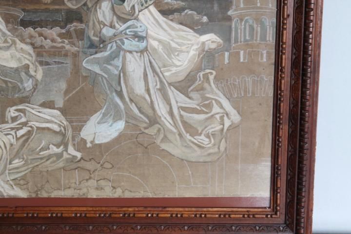 Antico dipinto a tempera raffigurante angeli, bozzetto per affresco del XIX secolo