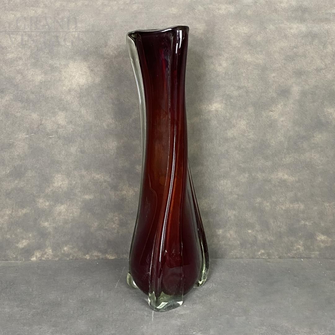 Antico e grande Vaso in Vetro Murano rosso Rubino