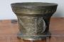 Antico mortaio da farmacia in bronzo lavorato con stemma e nome, 1859