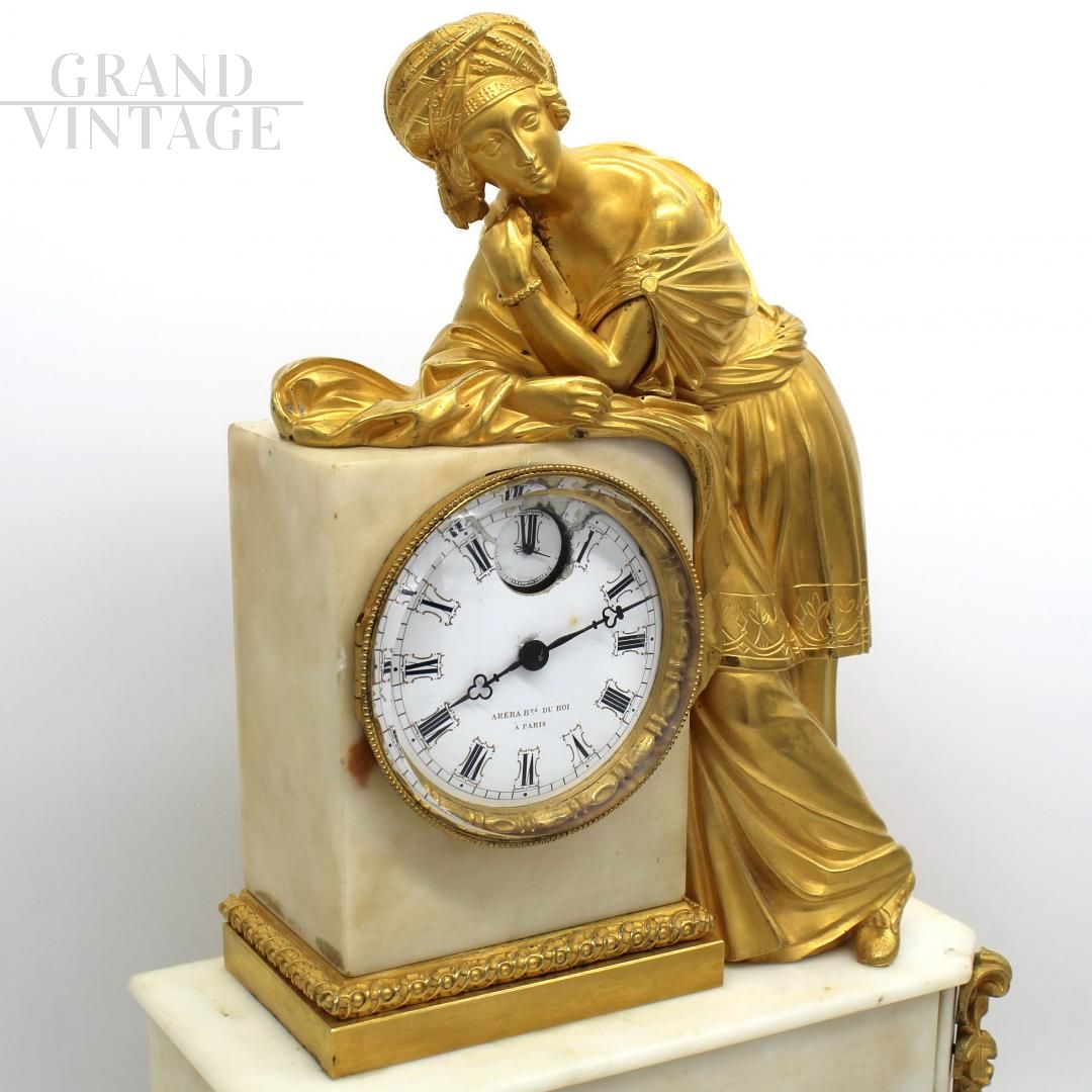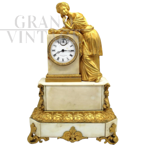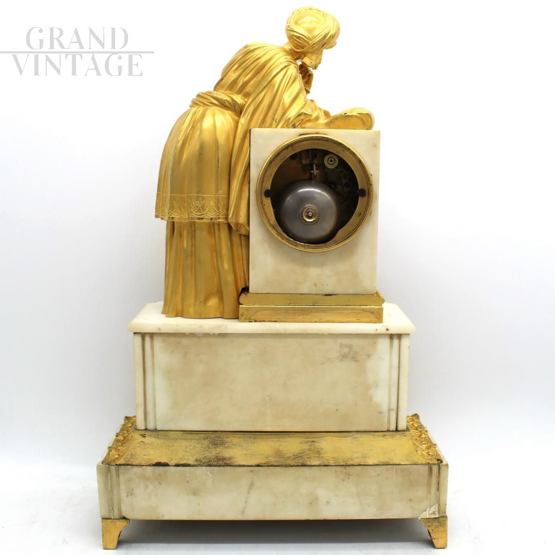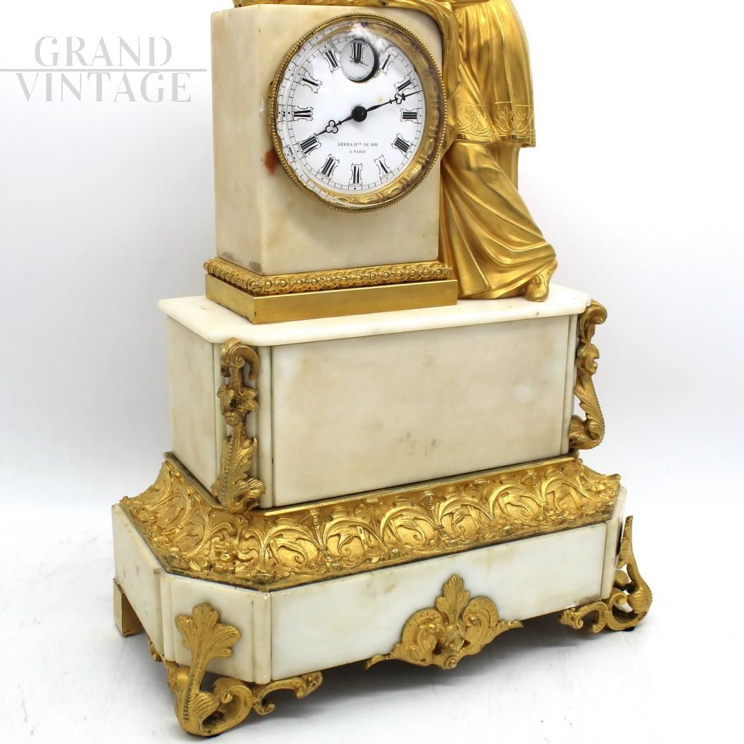 Orologio a pendolo Luigi Filippo in bronzo dorato e marmo bianco.