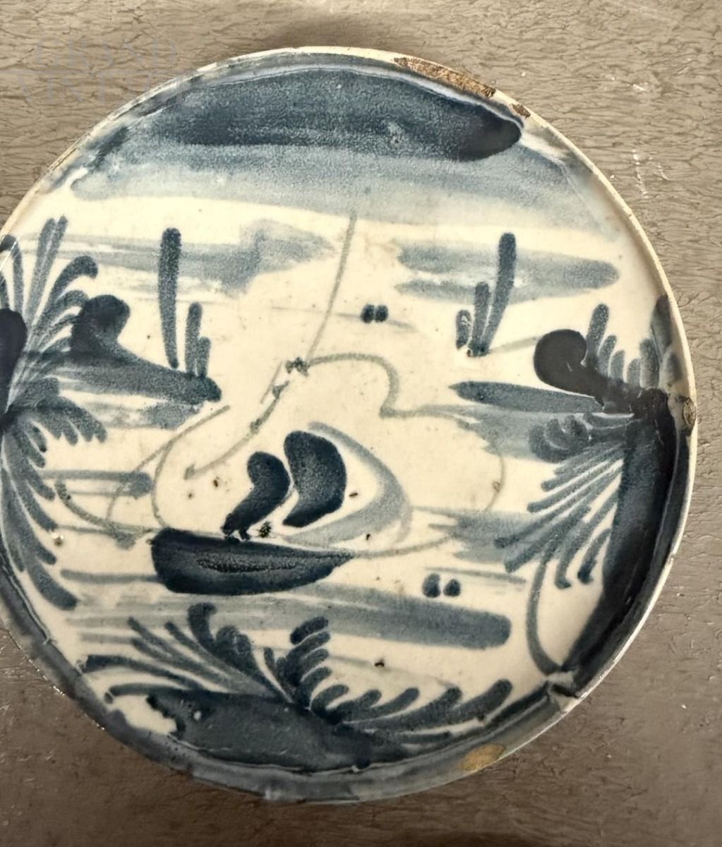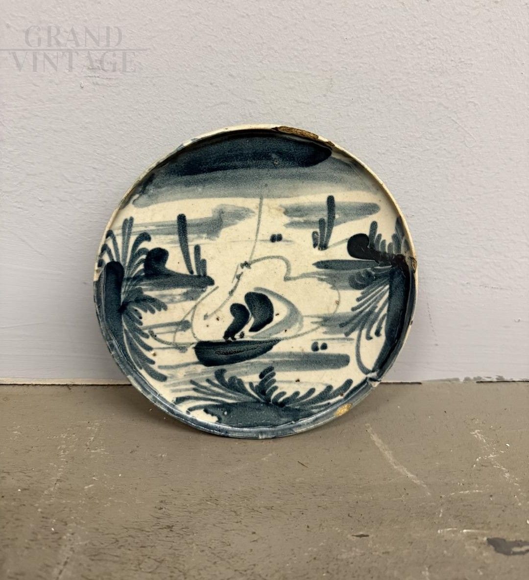 Antico piatto alzatina in ceramica Savona del XVII secolo