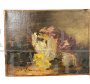Antico piccolo dipinto olio su tela con natura morta, XIX secolo