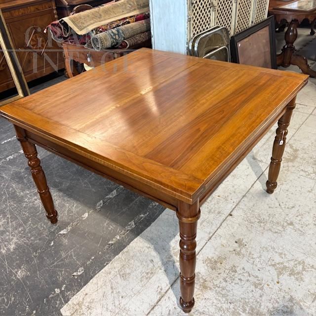 Tavolo toscano antico allungabile a libro di epoca Luigi Filippo, realizzato in noce massello nel XIX secolo, il suo piano da chiuso è quadrato con lato 115 cm, diventa 230 cm.