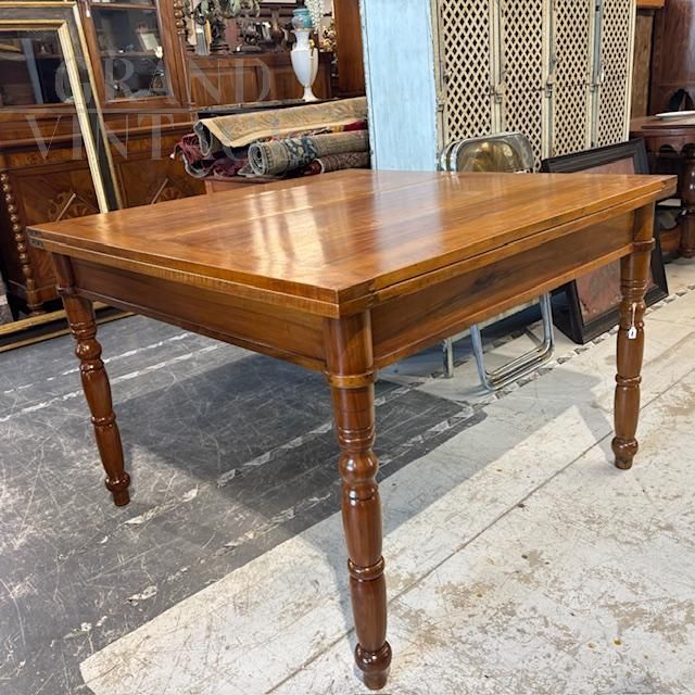 Antico tavolo a libro toscano allungabile in noce massello, XIX secolo