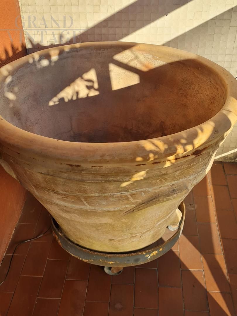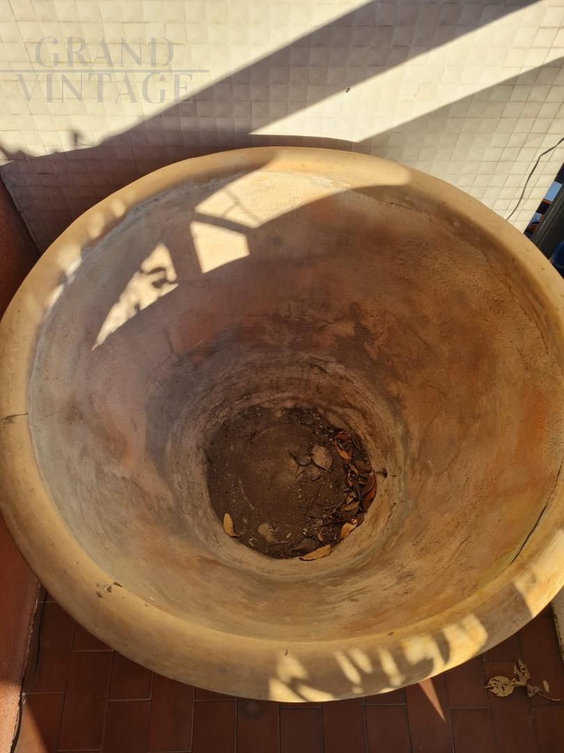 Vaso conico da limoni antico in cotto, 68 cm di diametro e 55 di altezza.