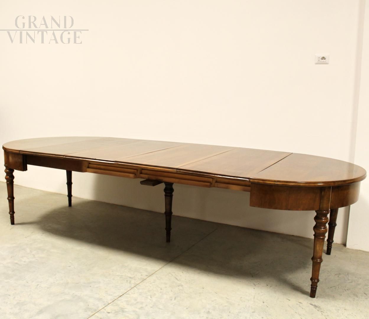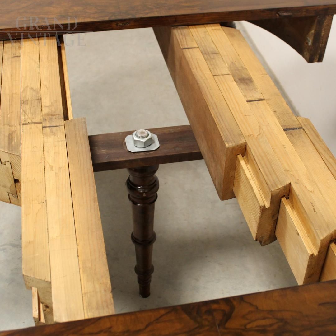 Antique extendable walnut table from the Louis Philippe period, Italy 19th century