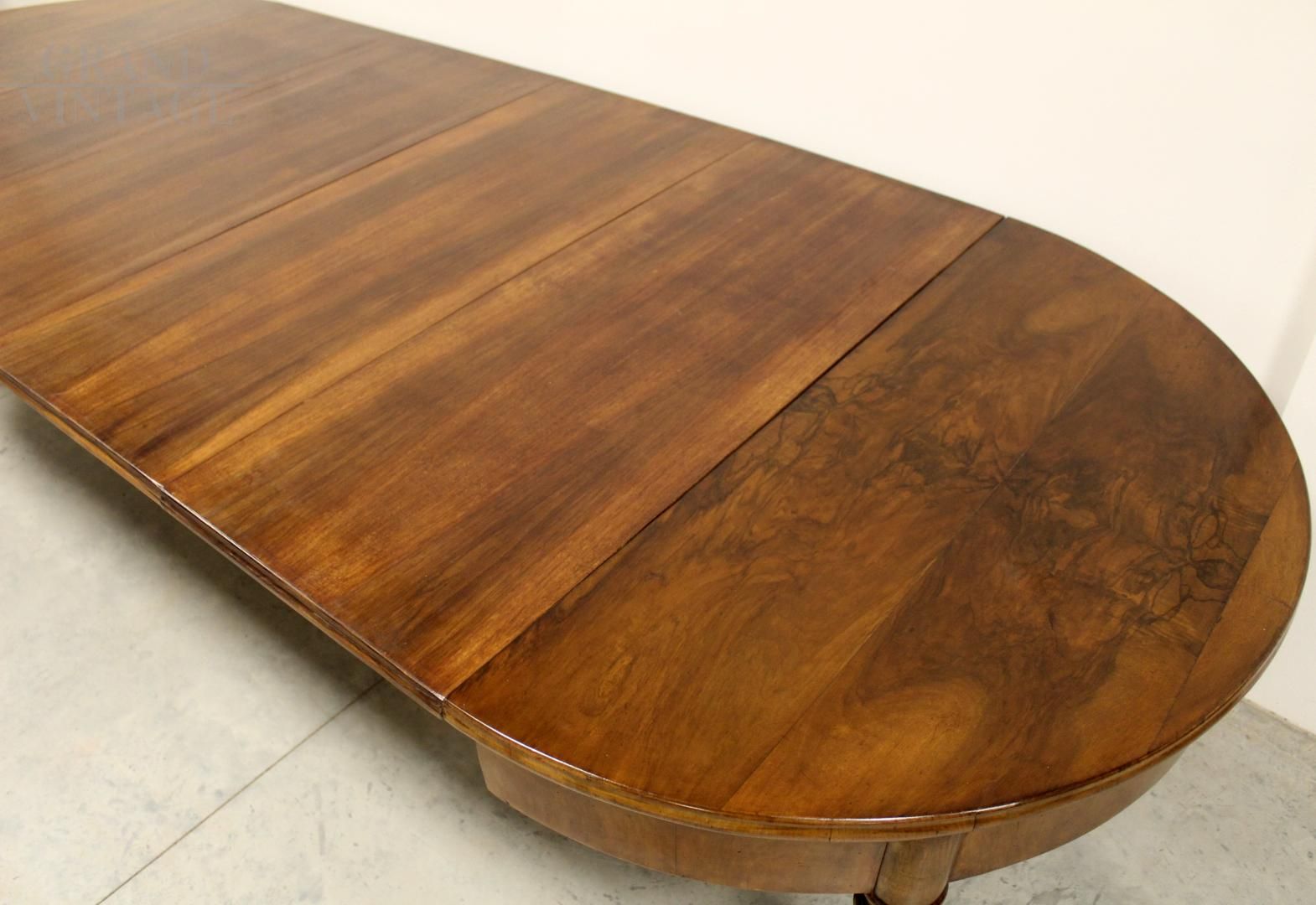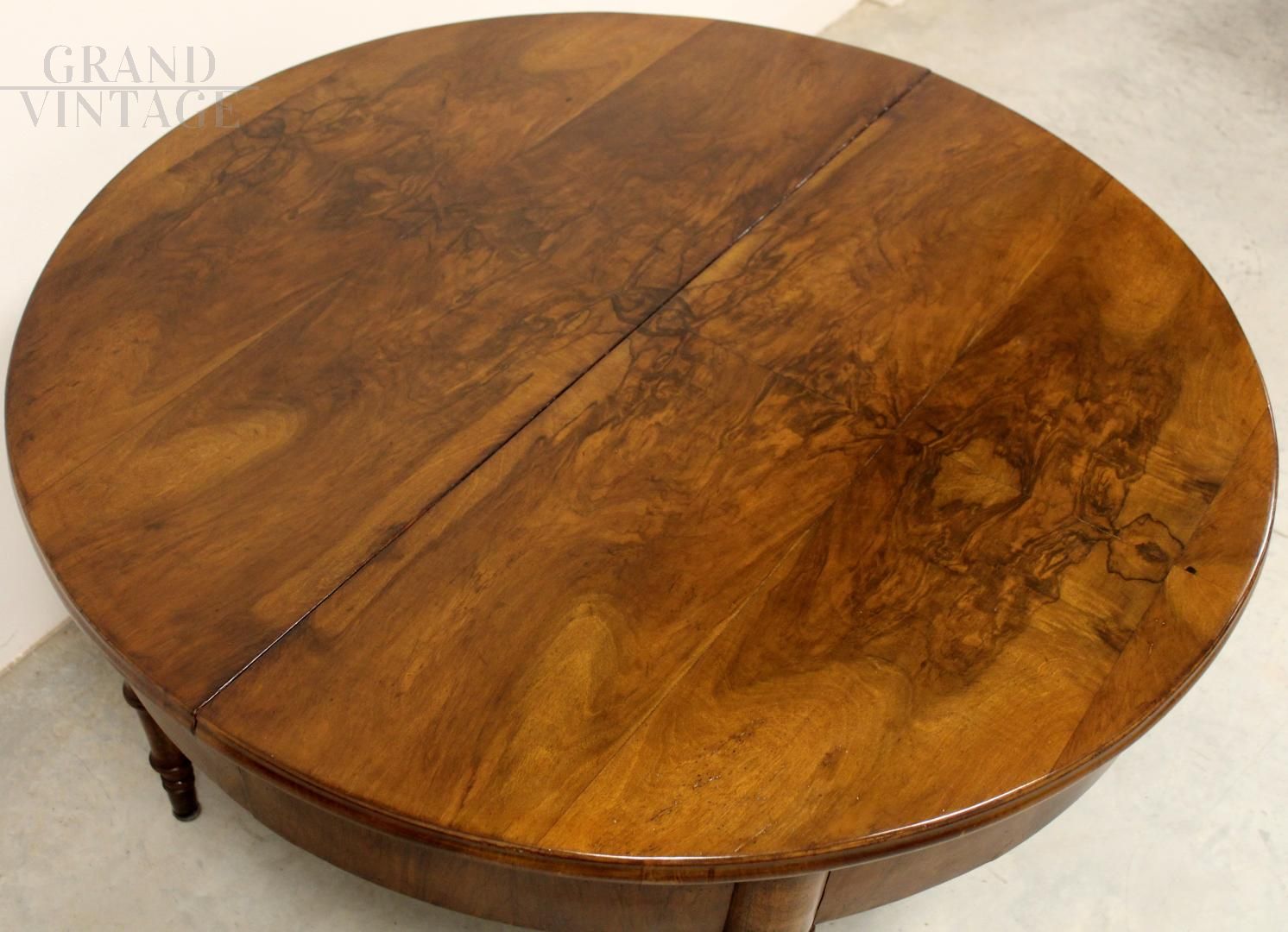 Extendable Louis Philippe table in walnut and walnut veneer from the second half of the 19th century, Louis Philippe era, from Italy. In perfect condition.