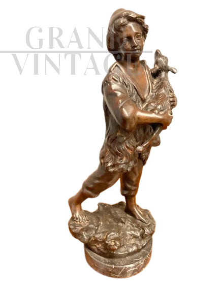 Antica scultura in bronzo raffigurante pastorella su base in marmo, realizzata dall’artista Napoletano Antonio Cinque. Opera di elevata qualità, curata nei minimi dettagli. Perfetto lo stato, firmata alla base.