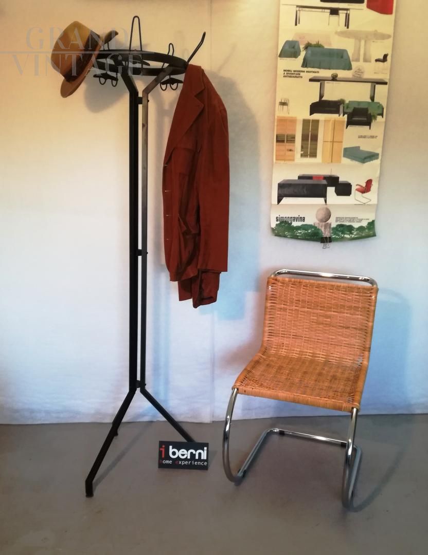 Appendiabiti vintage a stelo in metallo nero, anni '60