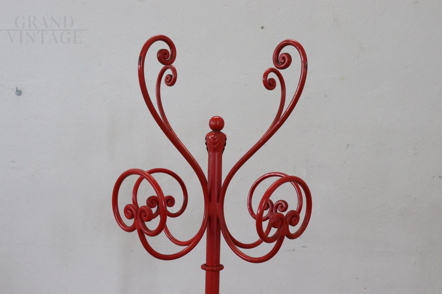 Appendiabiti vintage in ferro laccato rosso, inizio '900
