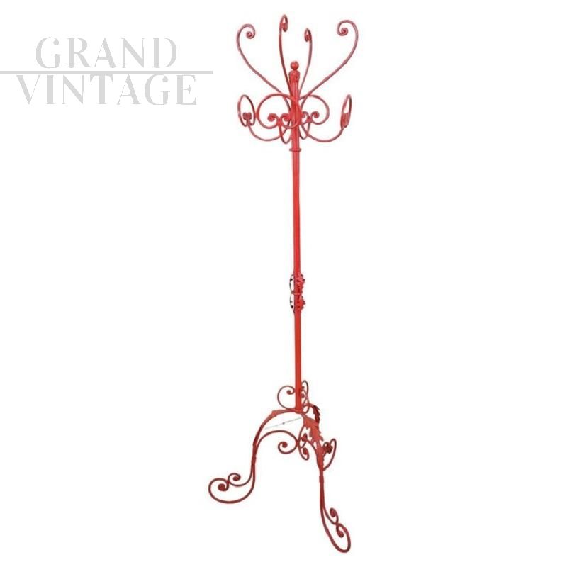 Bellissimo appendiabiti a piantana in ferro laccato rosso dei primi del XX secolo, la laccatura è probabilmente avvenuta in epoca più recente. Bellissima lavorazione del ferro con volute e riccioli. Buone condizioni generali, ottimo prezzo trattabile.