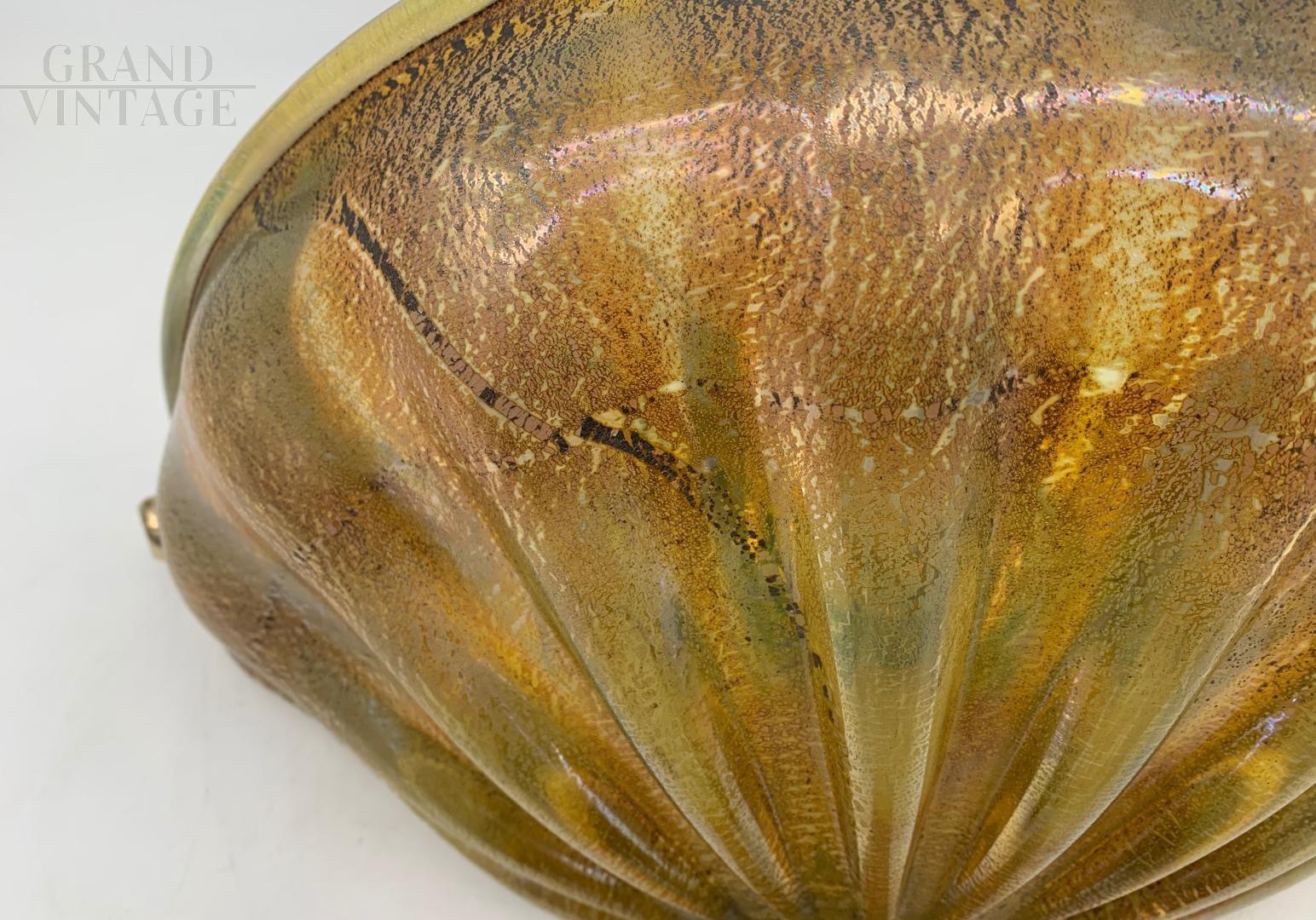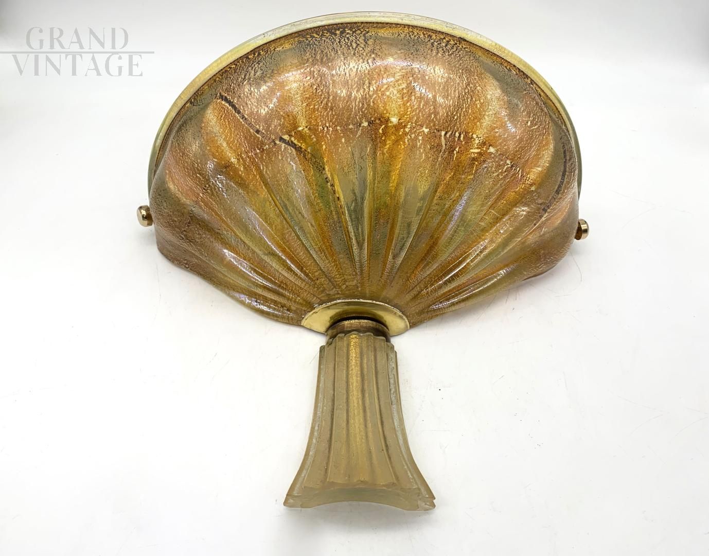 Fantastica e rara applique lampada da parete singola attribuita alla ditta Cenedese in vetro di Murano multicolore con acidatura e una ricca sospensione d'oro, Italia anni '60.