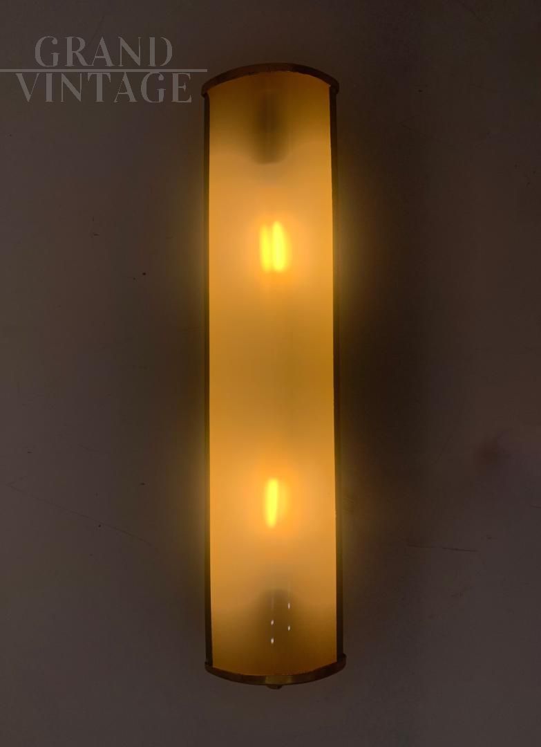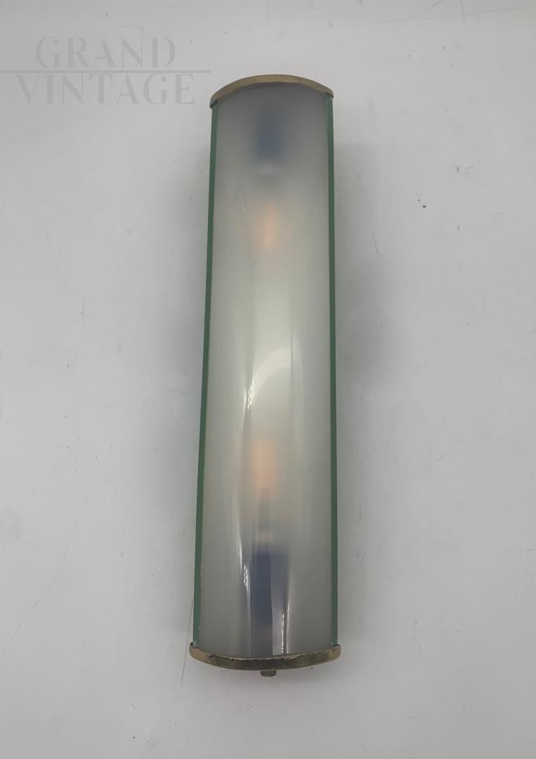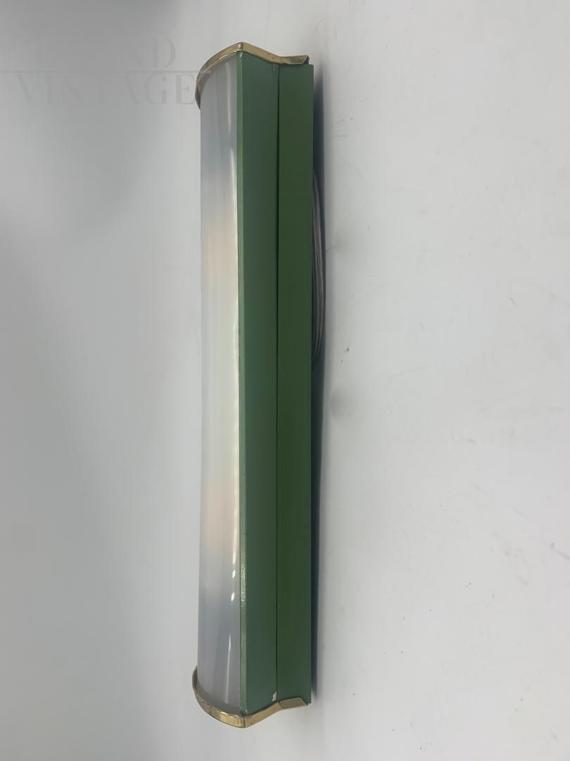 Applique singola design vintage della ditta Meltex, made in Italy degli anni '50 circa. L'applique ha 2 portalampada e14. Si possono mettere le lampadine al Led. Struttura in ferro e ottone; Colore originale verde e copertura satinata in plastica. Nel prezzo è compreso anche il restauro.