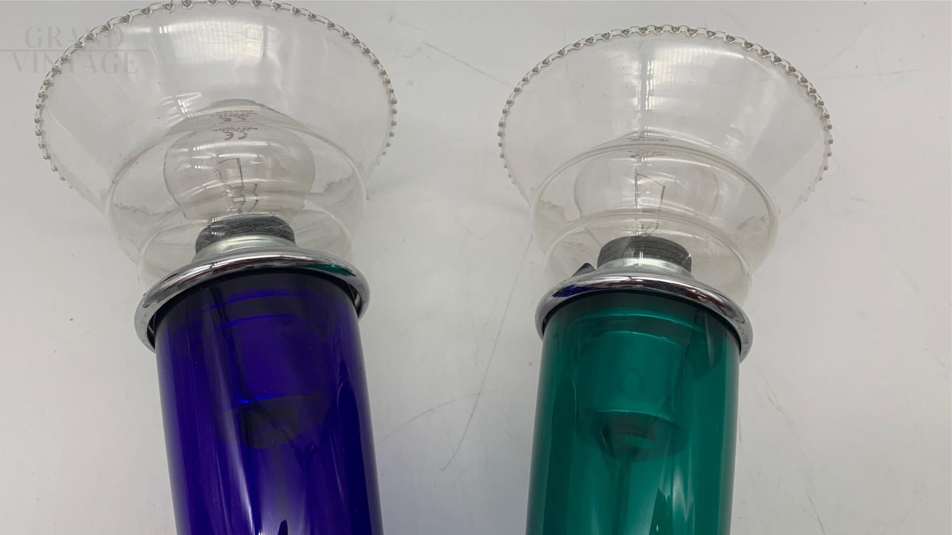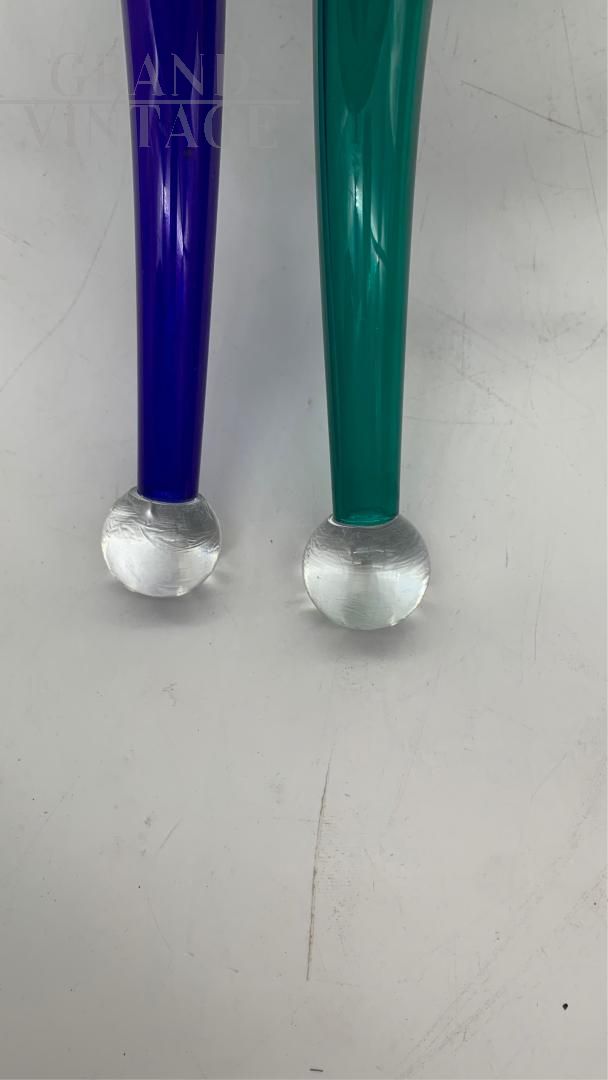 Applique lampada da parete VeArt in vetri di Murano verdi e blu, anni '80