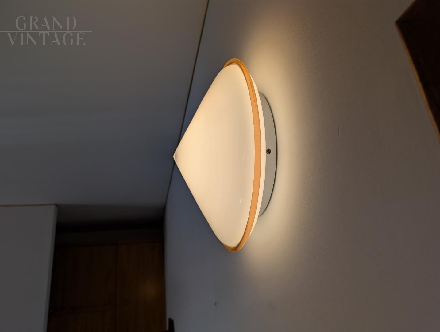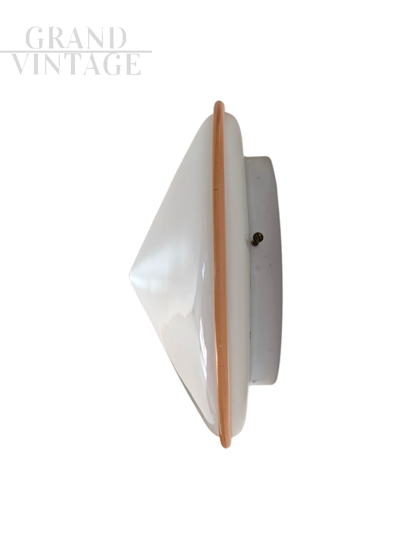 Applique vintage in vetro soffiato con bordo ambrato, anni '70