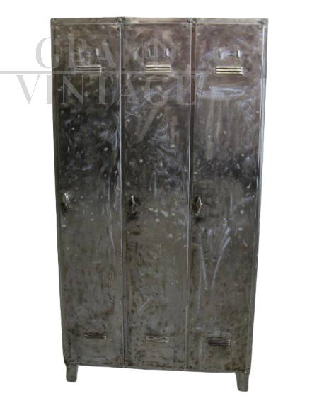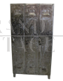 Armadietto a tre ante in ferro, ripulito totalmente. All'interno presenta degli appendiabiti e un ripiano superiore.