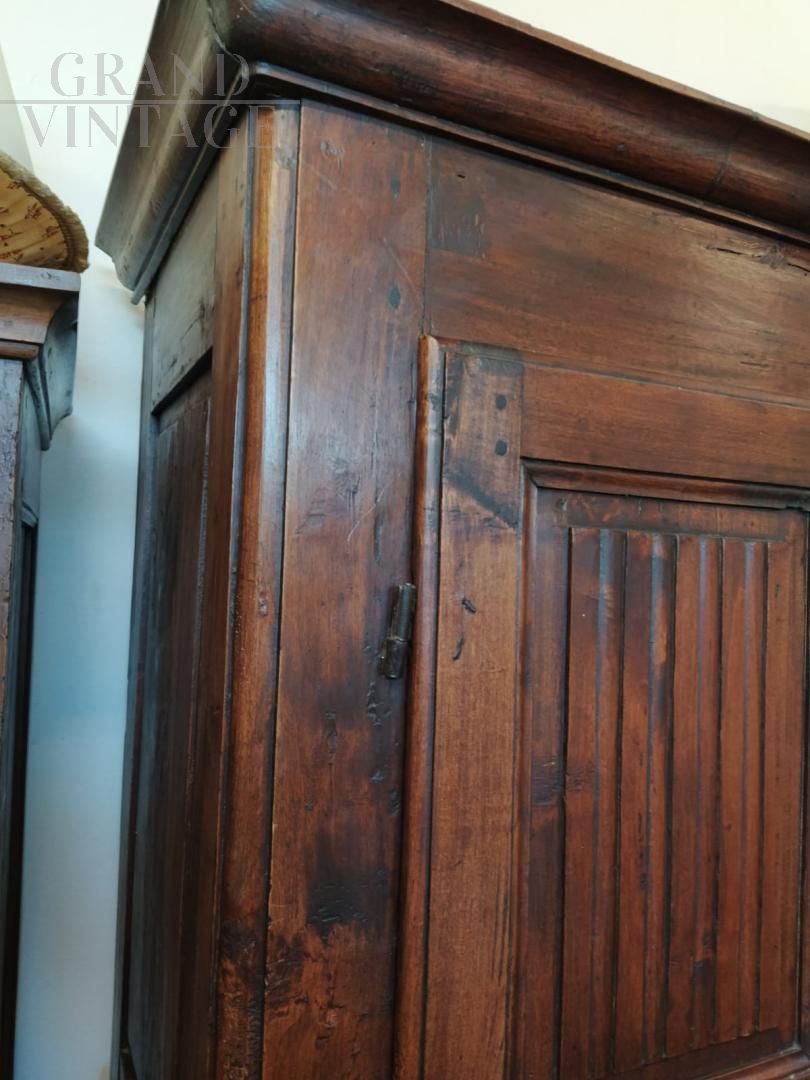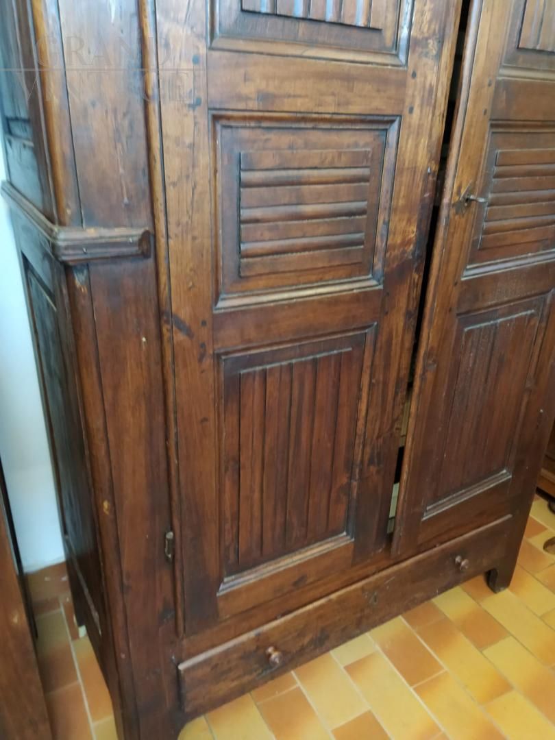 Antico armadio piemontese del '700 in legno di ontano, l'interno è diviso in due corpi, corredato di cassetto inferiore, con ante a decoro grissino. Restaurato.
