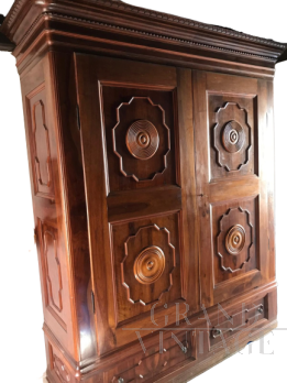 Grande armadio antico in noce a due corpi separati, fine '700, restaurato.