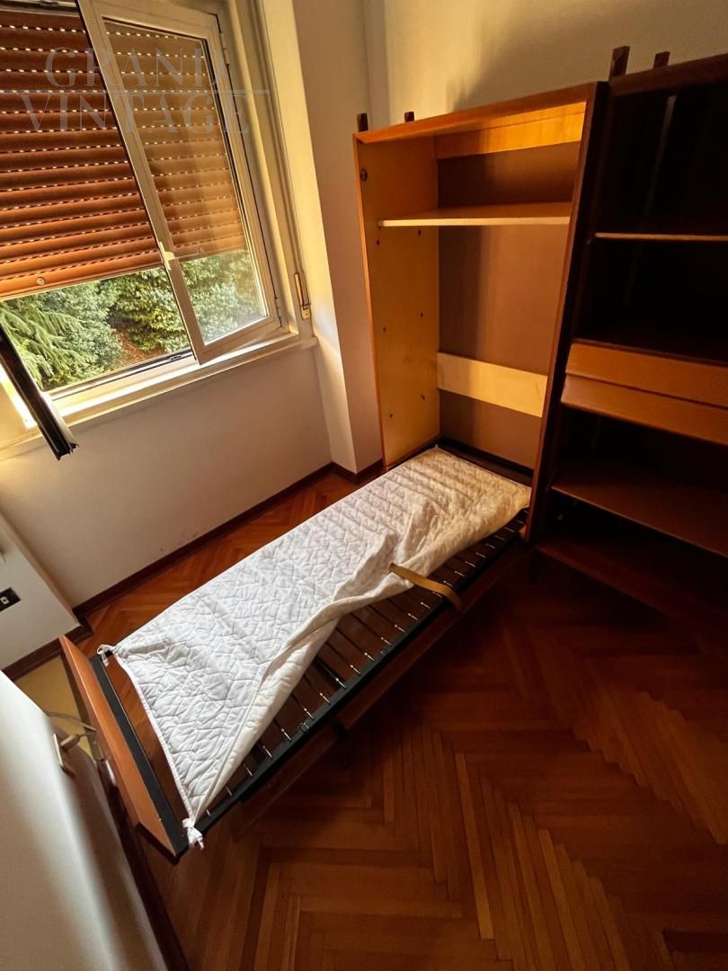 Armadio vintage Princic con letto singolo a scomparsa, Gorizia anni '50 - '60, con la tipica serigrafia con figure dell'antica Grecia.