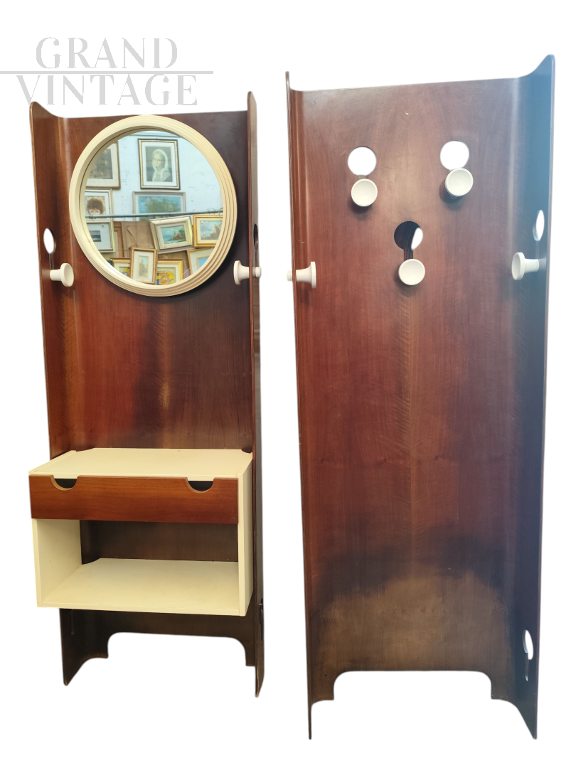 Attaccapanni da ingresso FIARM design di Carlo De Carli composto da due moduli da fissare alla parete, dotato di specchio e console con cassetto, in buono stato di conservazione.