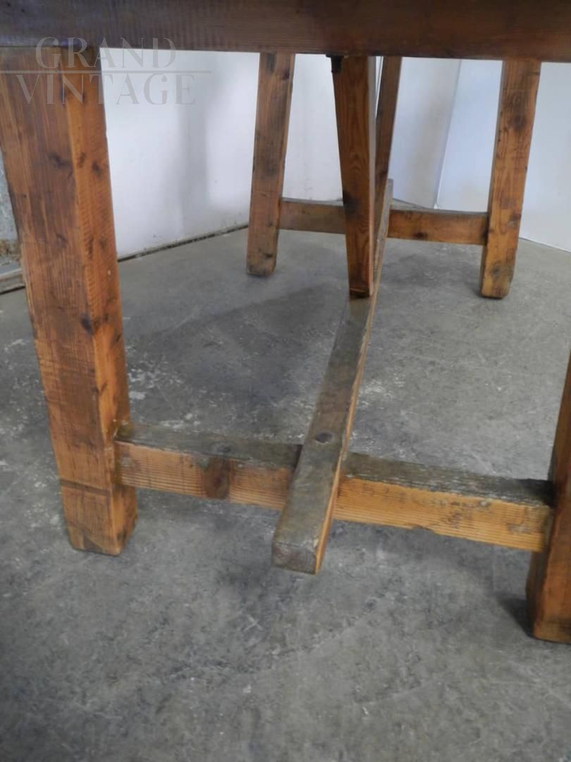 Bancone tavolo banco da lavoro rustico in legno di abete anni '40, pulito e trattato con cera naturale. In buone condizioni.