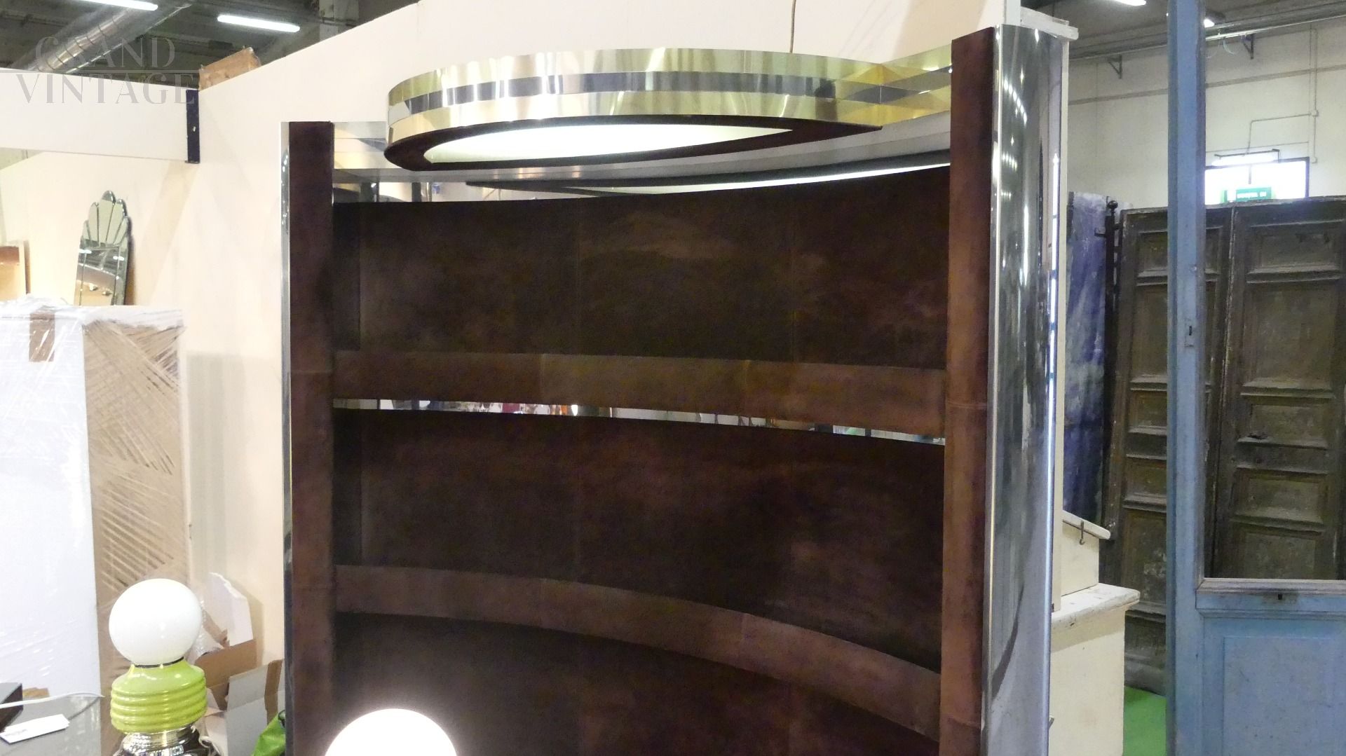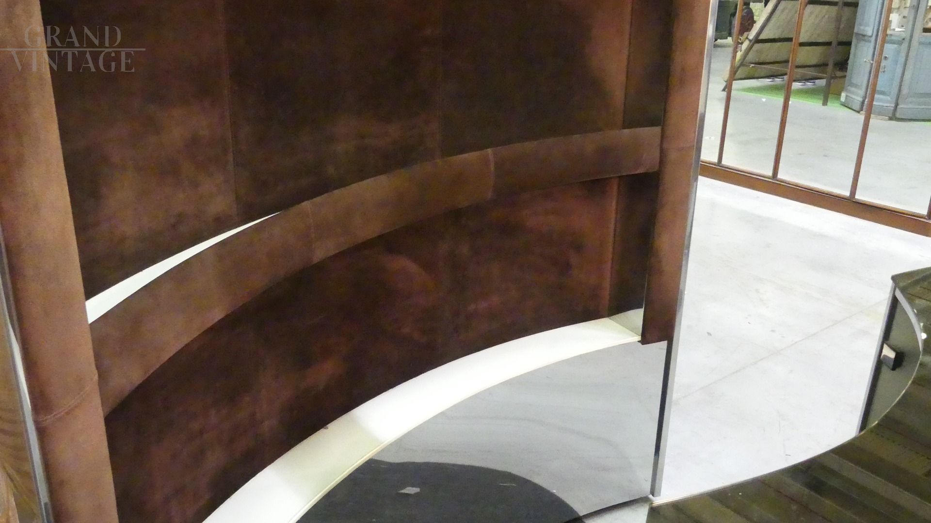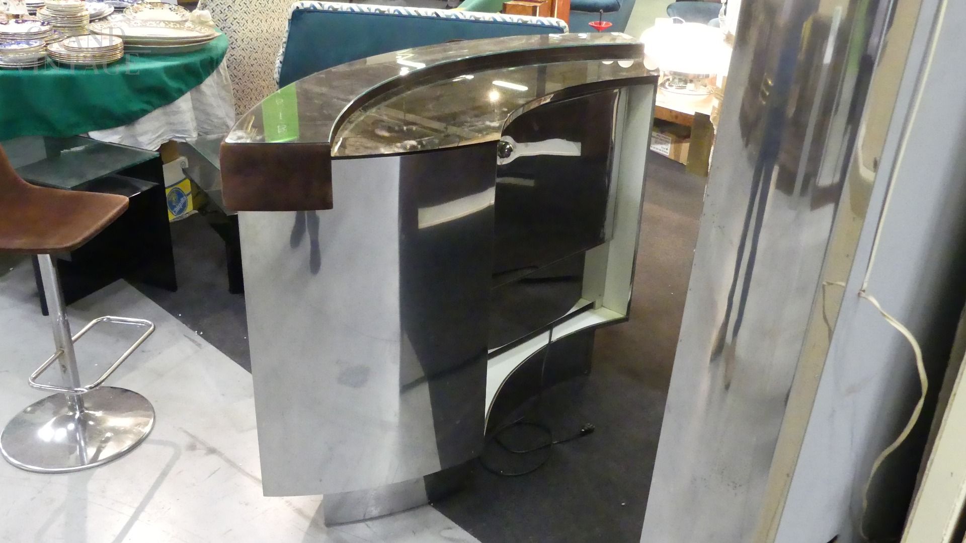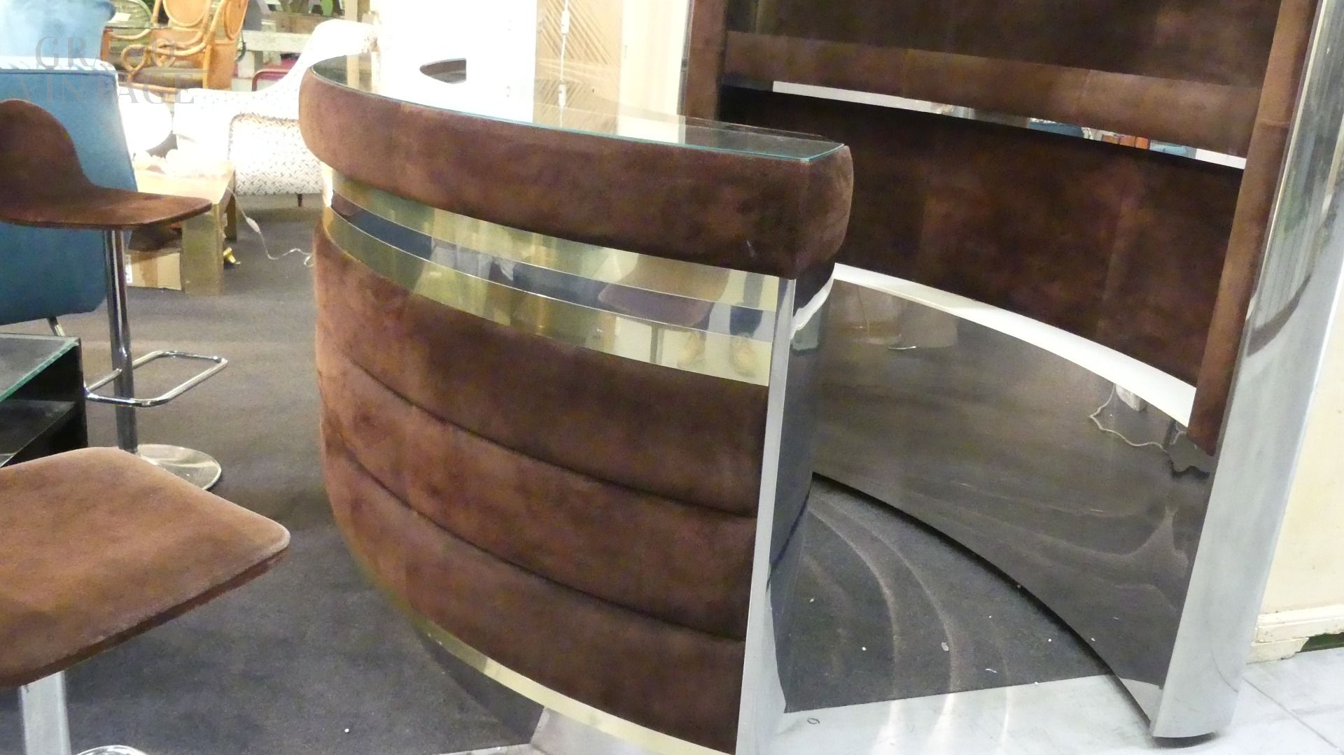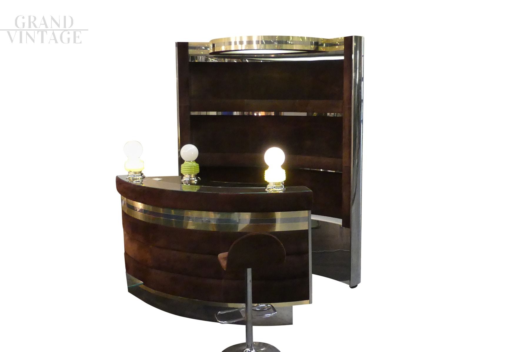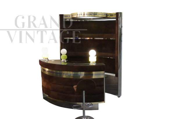 Bar Willy Rizzo degli anni '70, Italiano. Prodotto in metallo, ottone, acciaio e velluto.