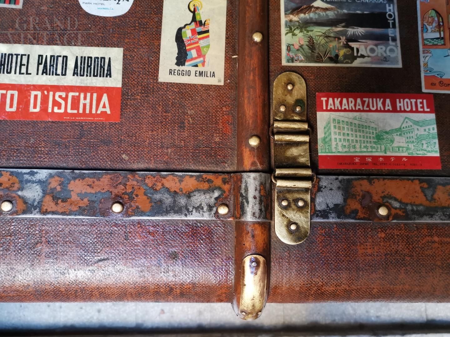 Baule da viaggio con cassettiera e adesivi