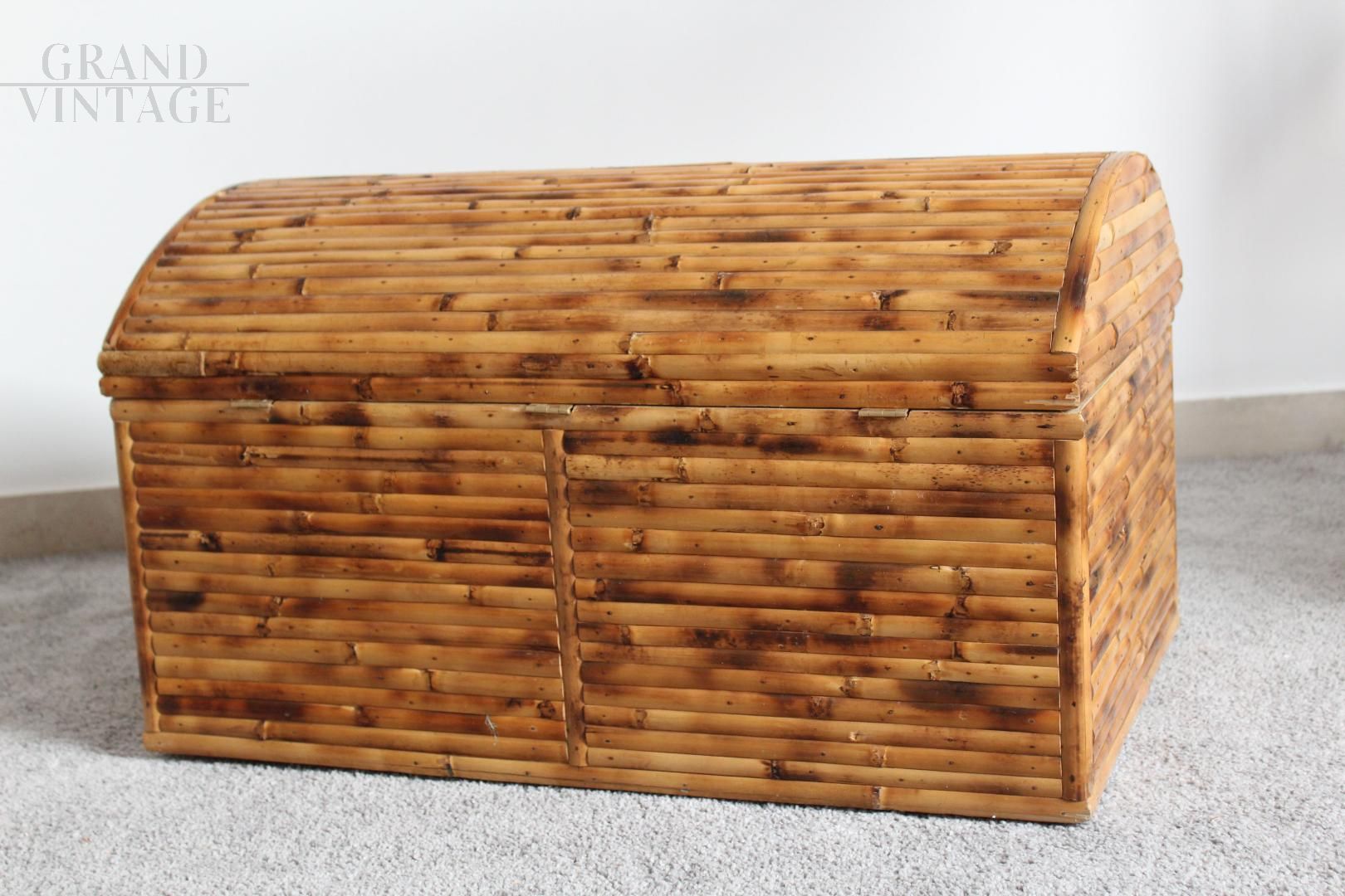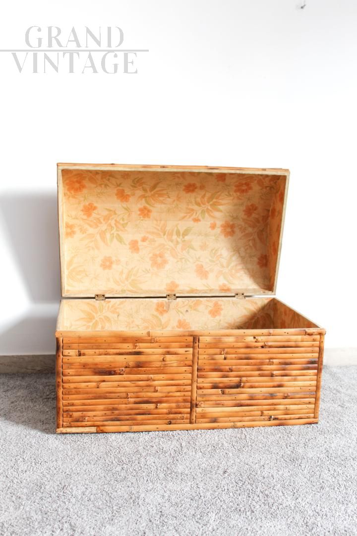 Baule vintage in bamboo, Italia anni '70, in ottimo stato di conservazione, la carta interna è originale dell'epoca, molto scenografico e adatto a qualsiasi ambiente.