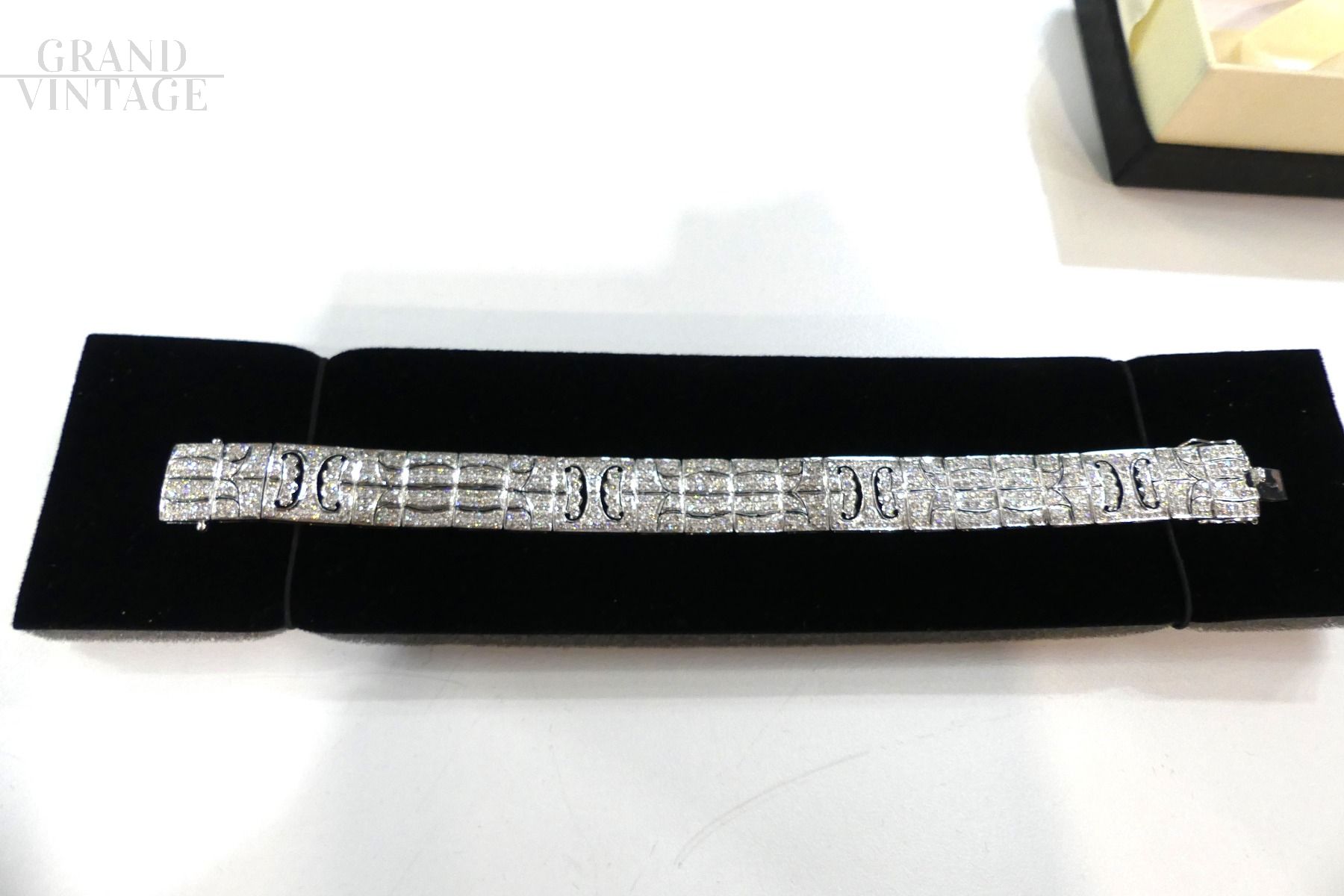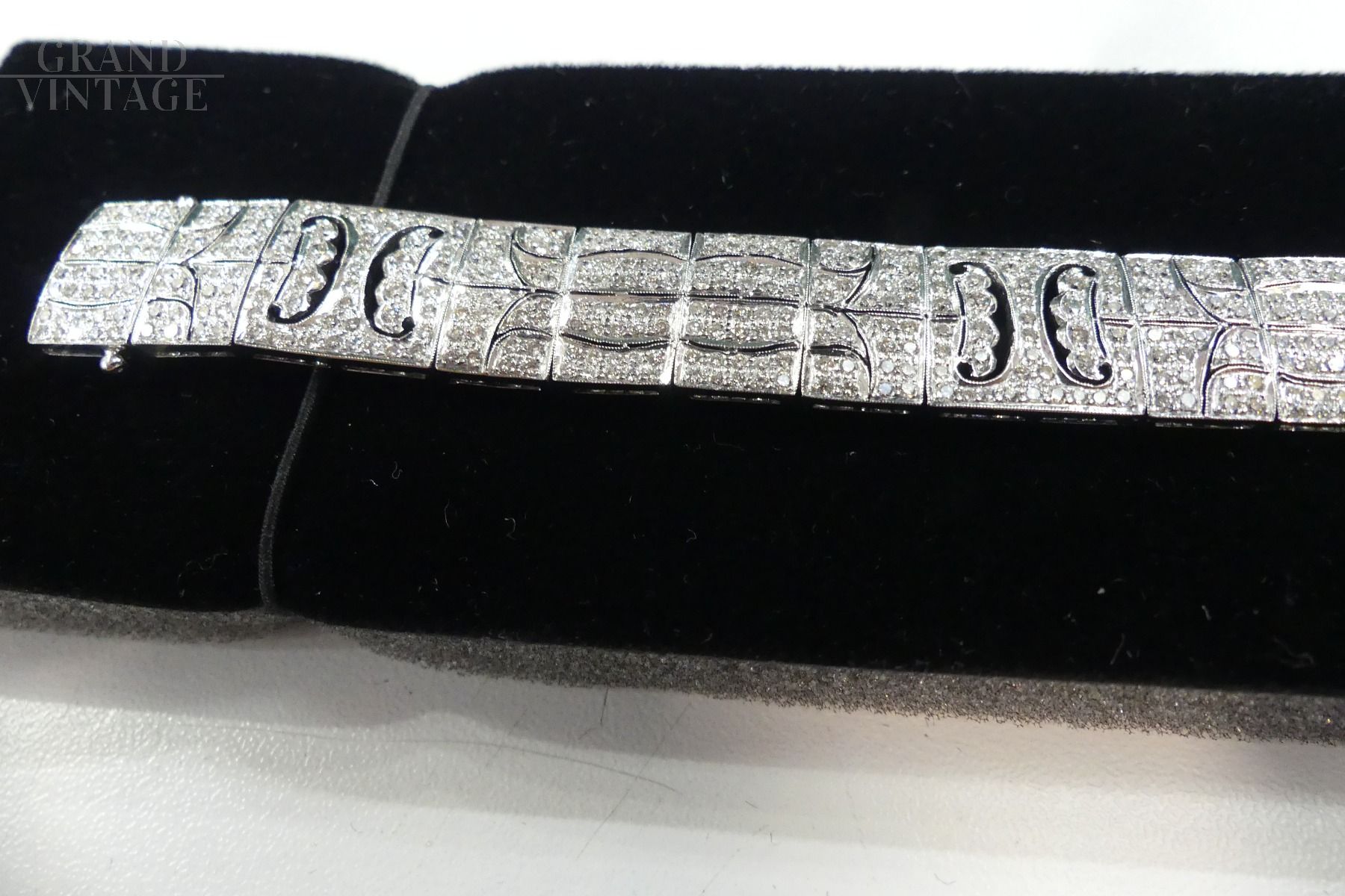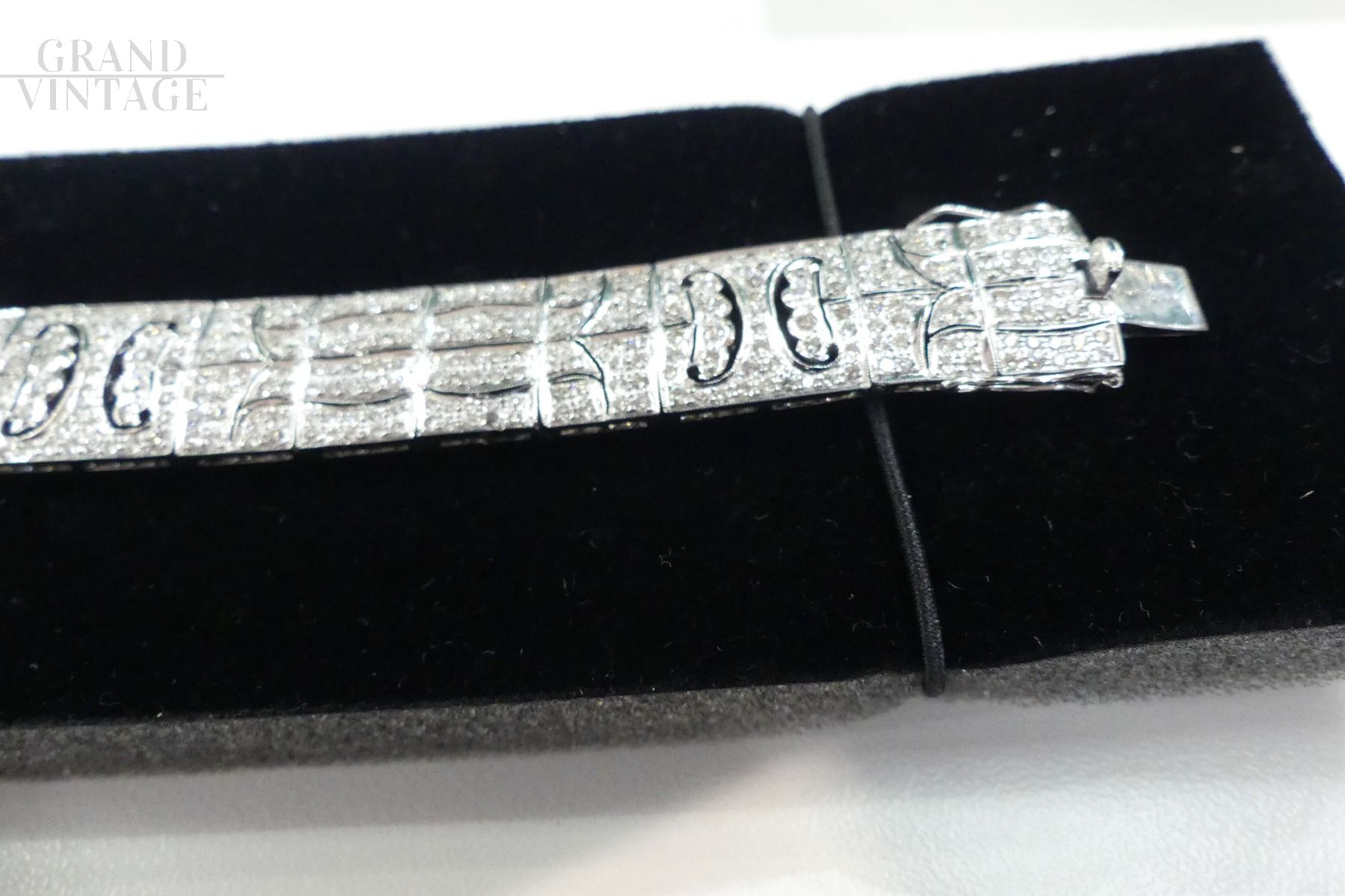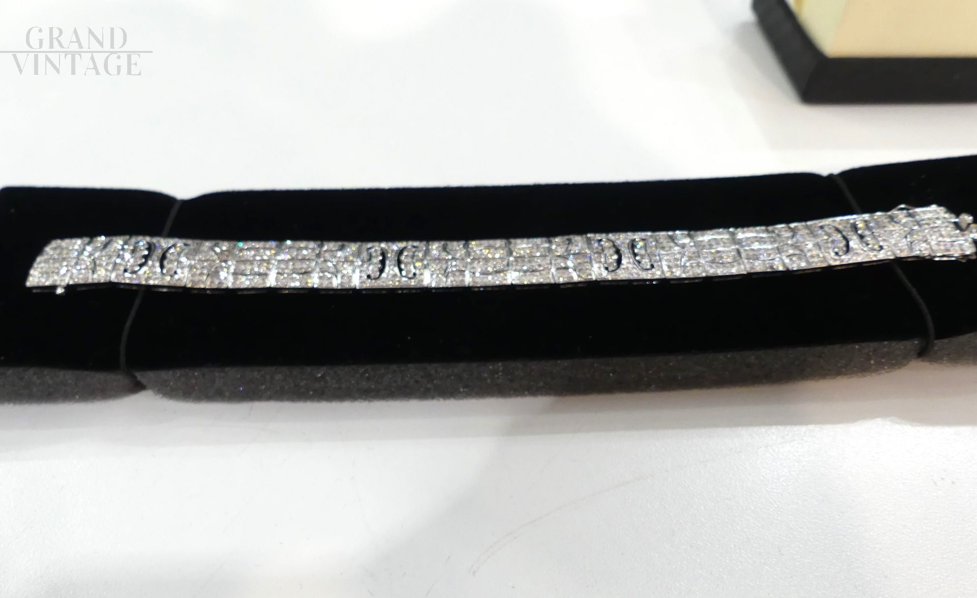 Bracciale in oro bianco 18 kt con diamanti di caratura 7 carati, larghezza 18 cm, anni '70.