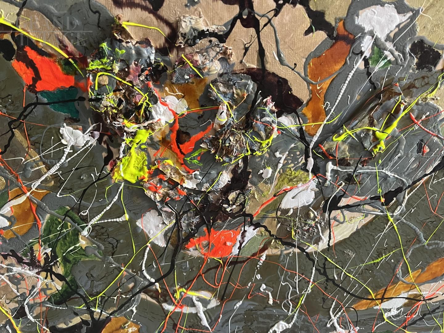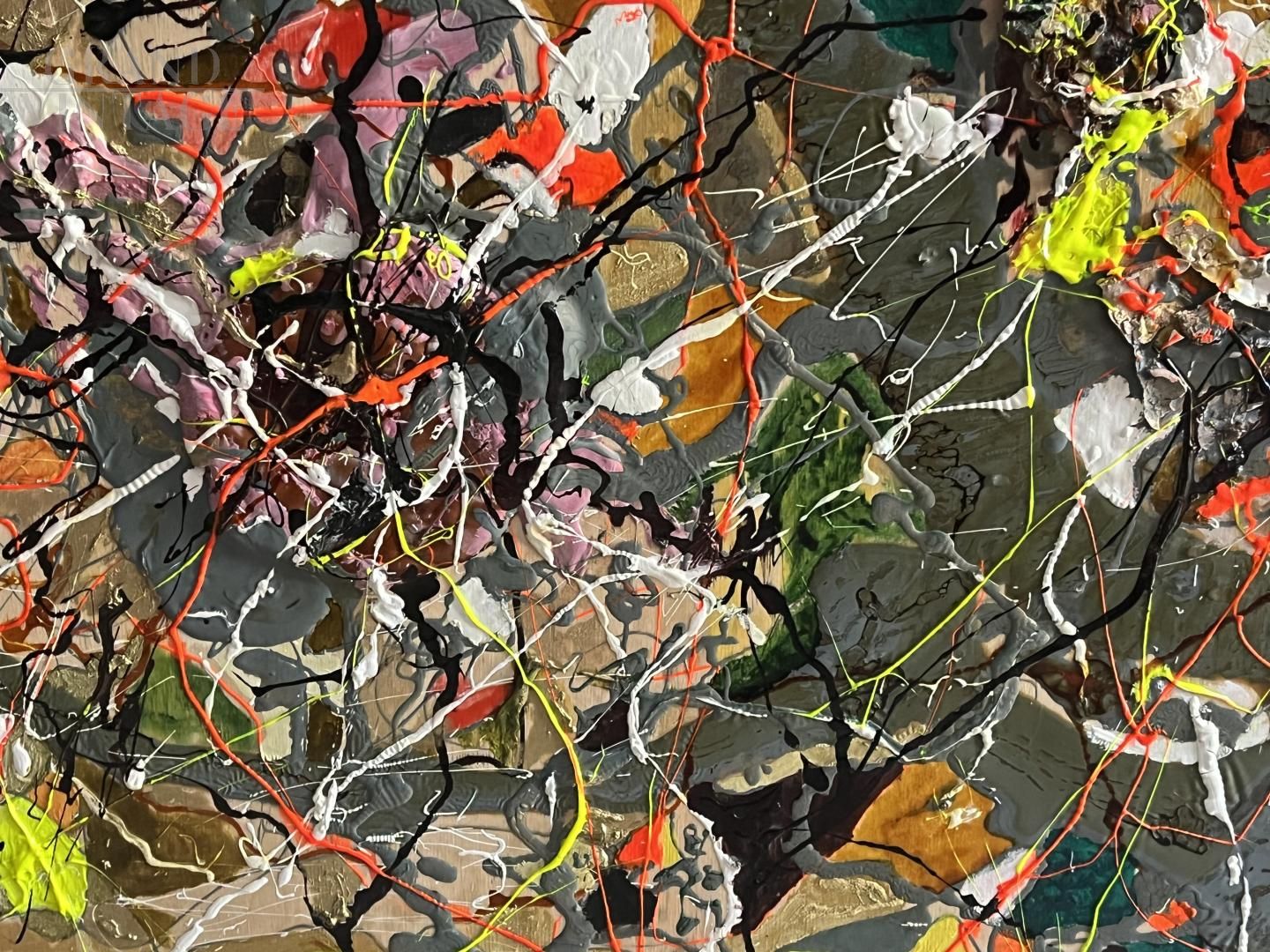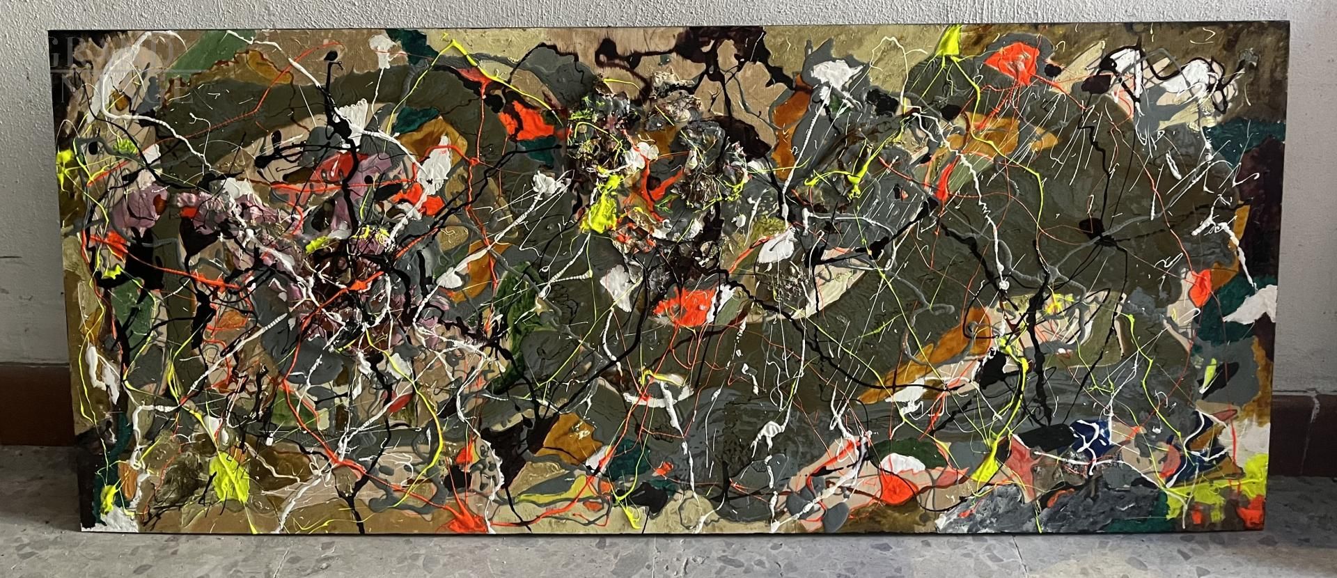 Dipinto astrattista realizzato dall’artista siciliano Bruno Carlino (1952) con tempera e smalto su tavola, un'opera contemporanea ispirata alle famose tele di Jackson Pollock, in una spumeggiante sinfonia di colori che si sovrappongono tra loro grazie alla visionaria ed energica creatività dell’artista. Bruno Carlino (1952) è un artista siciliano inventivo e versatile, capace di realizzare pregevoli opere astratte ma anche copie dei più celebri dipinti della storia dell’arte. Dipinto munito di certificazione di autenticità firmato dall’artista. Opera ideale per arredare ambienti moderni.