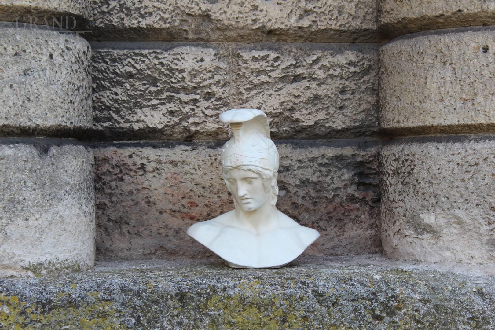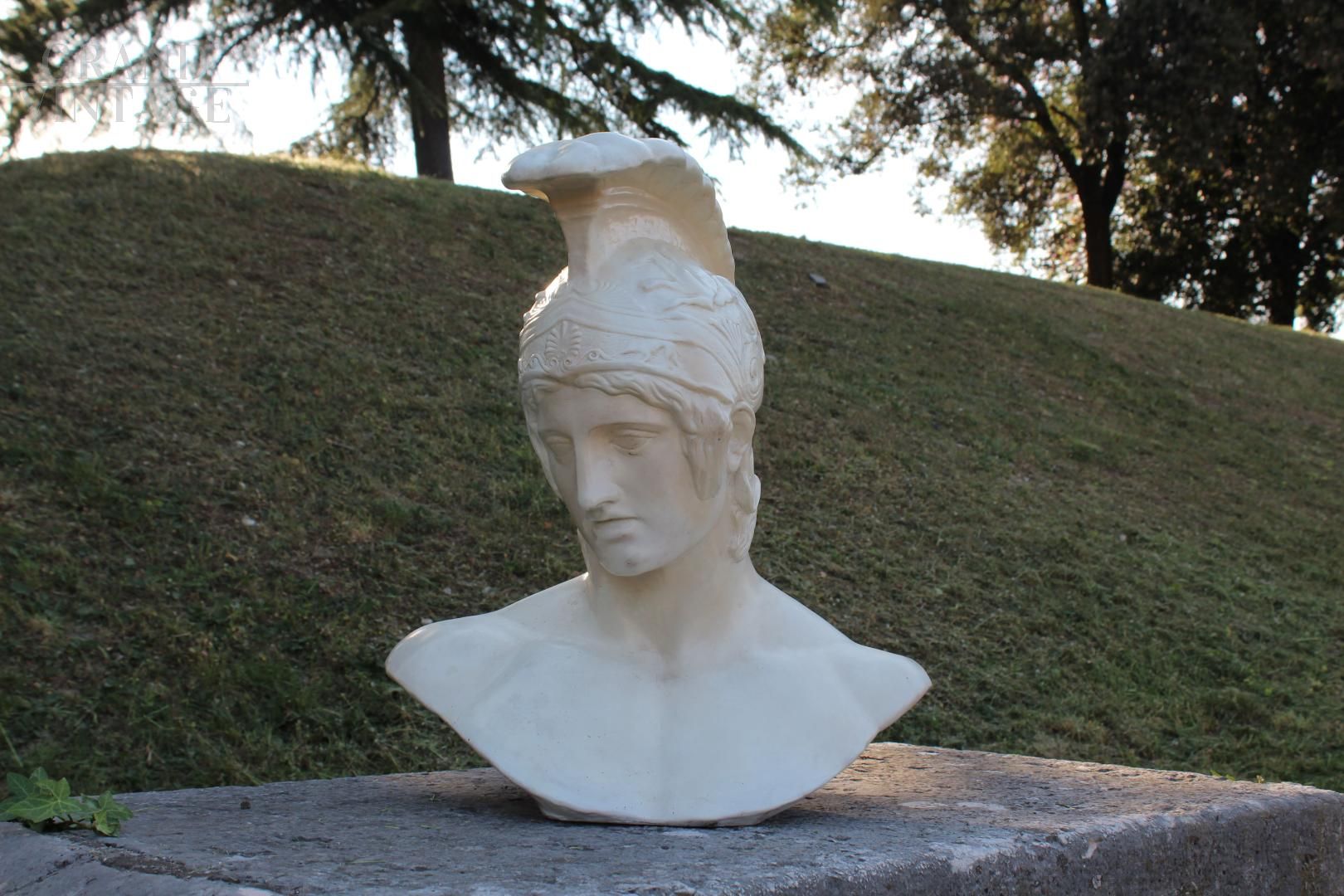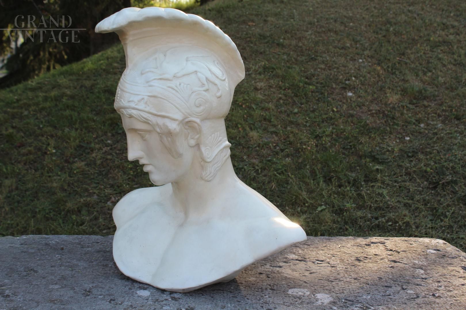 Busto di Achille in gesso, Italia anni '50. Achille/Achilléus, soprannominato piè veloce o piè rapido, è un eroe della mitologia greca, eroe leggendario della guerra di Troia e protagonista dell'Iliade. Eroe della mitologia greca, figlio di Peleo e della nereide Tetide. È l'eroe principale dell'Iliade e uno dei personaggi più celebri nel mondo antico.