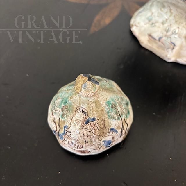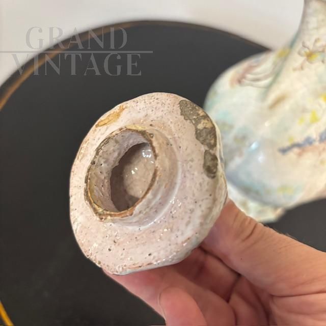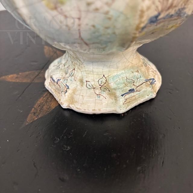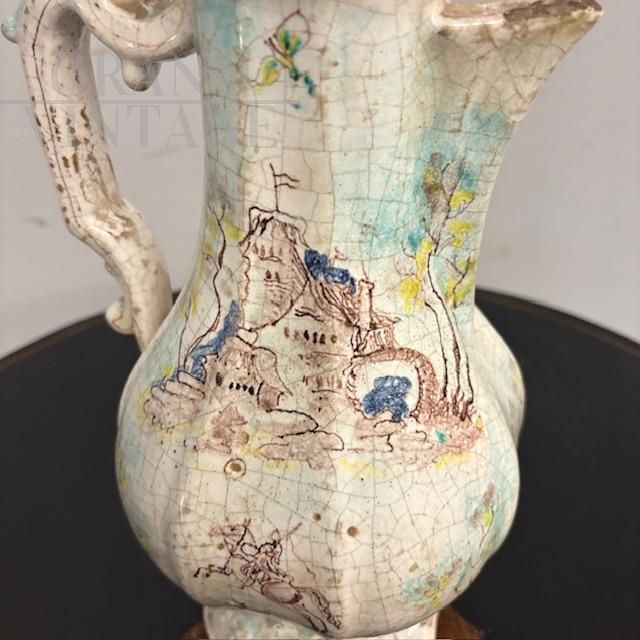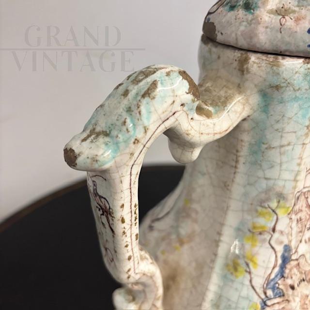 Caffettiera o versatoio antico in ceramica di Albisola dipinta, XVIII secolo