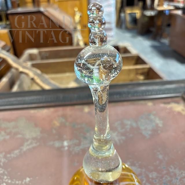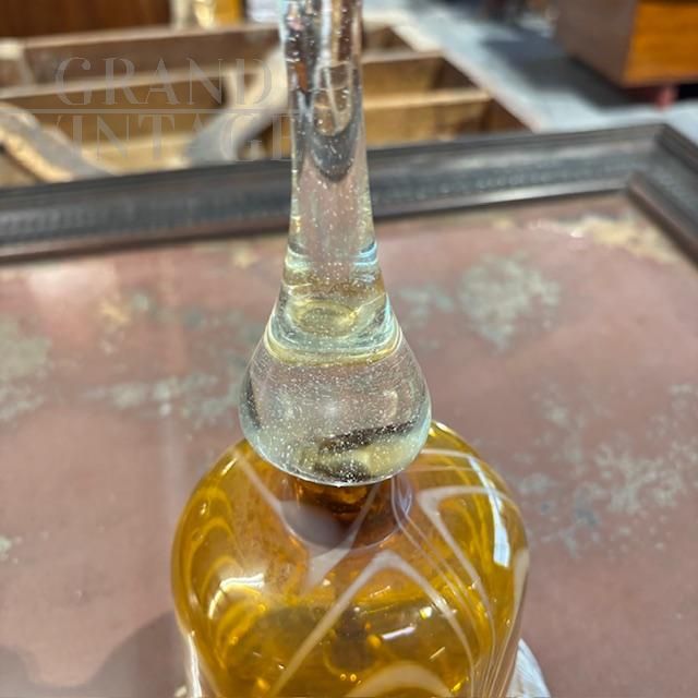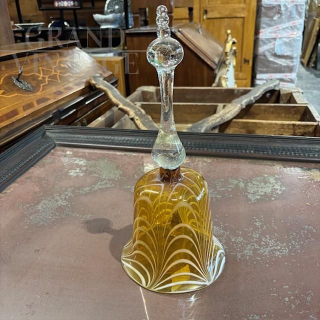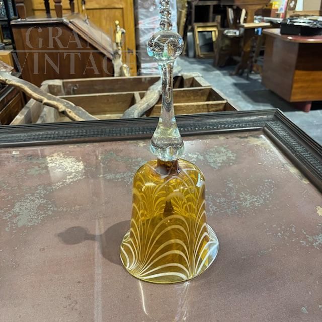Grande campana antica in vetro giallo con decorazioni striate bianche, realizzata nel XIX secolo, in perfetto stato.