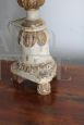Antico candelabro da altare in legno dipinto laccato oro e avorio, realizzato nel XVIII secolo, presenta piccoli difetti e mancanze. Il dipinto è solo frontale, poiché una volta posto sull'altare veniva ammirato solo dai partecipanti alla funzione. Altezza cm 90.