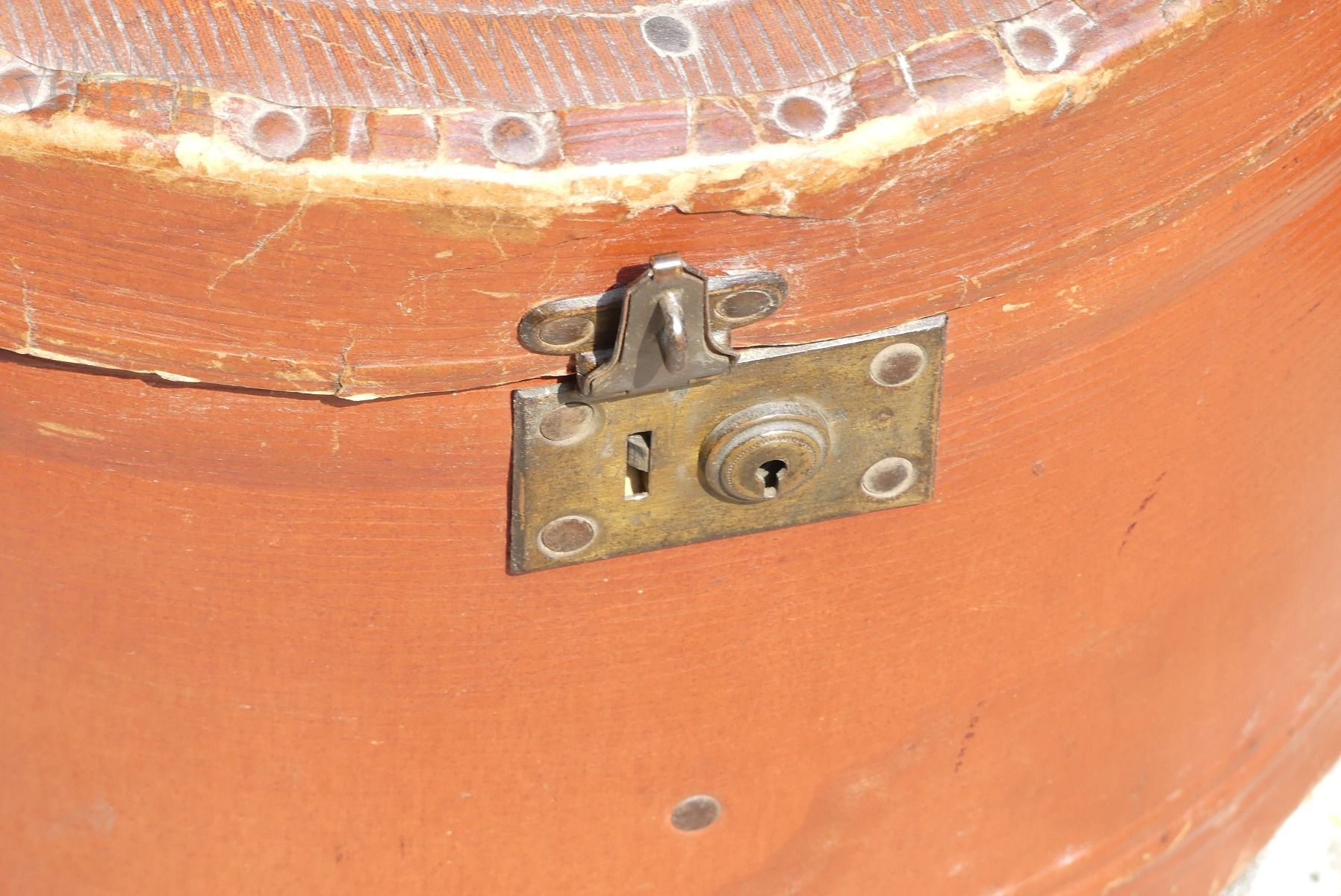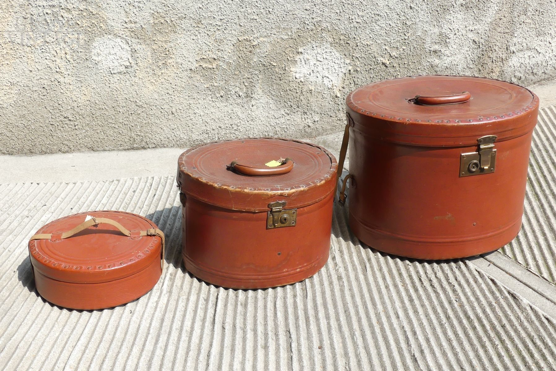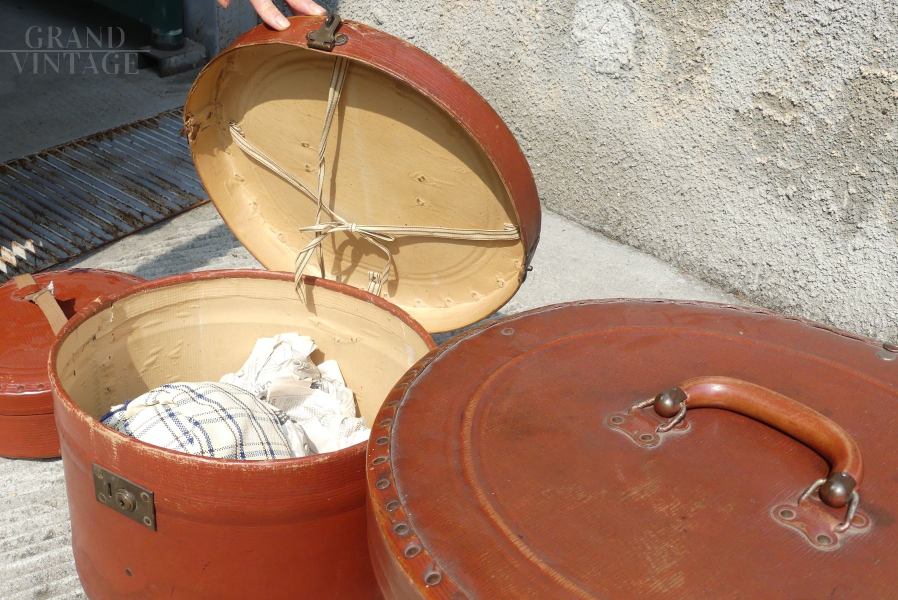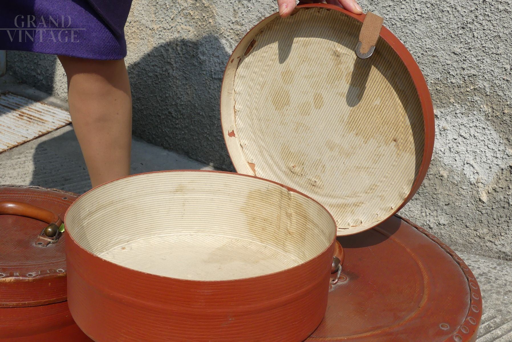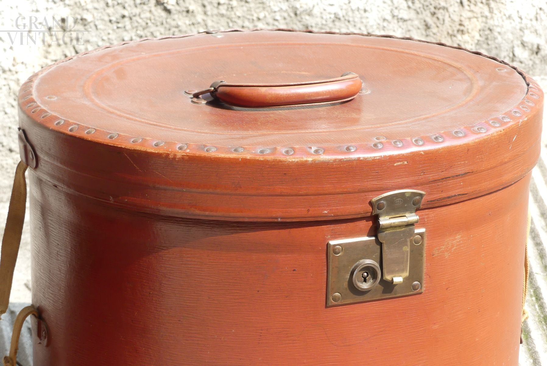 Cappelliera del 1930 in cartone pressato di origine Lombarda. E' un bel colore terra di Siena..