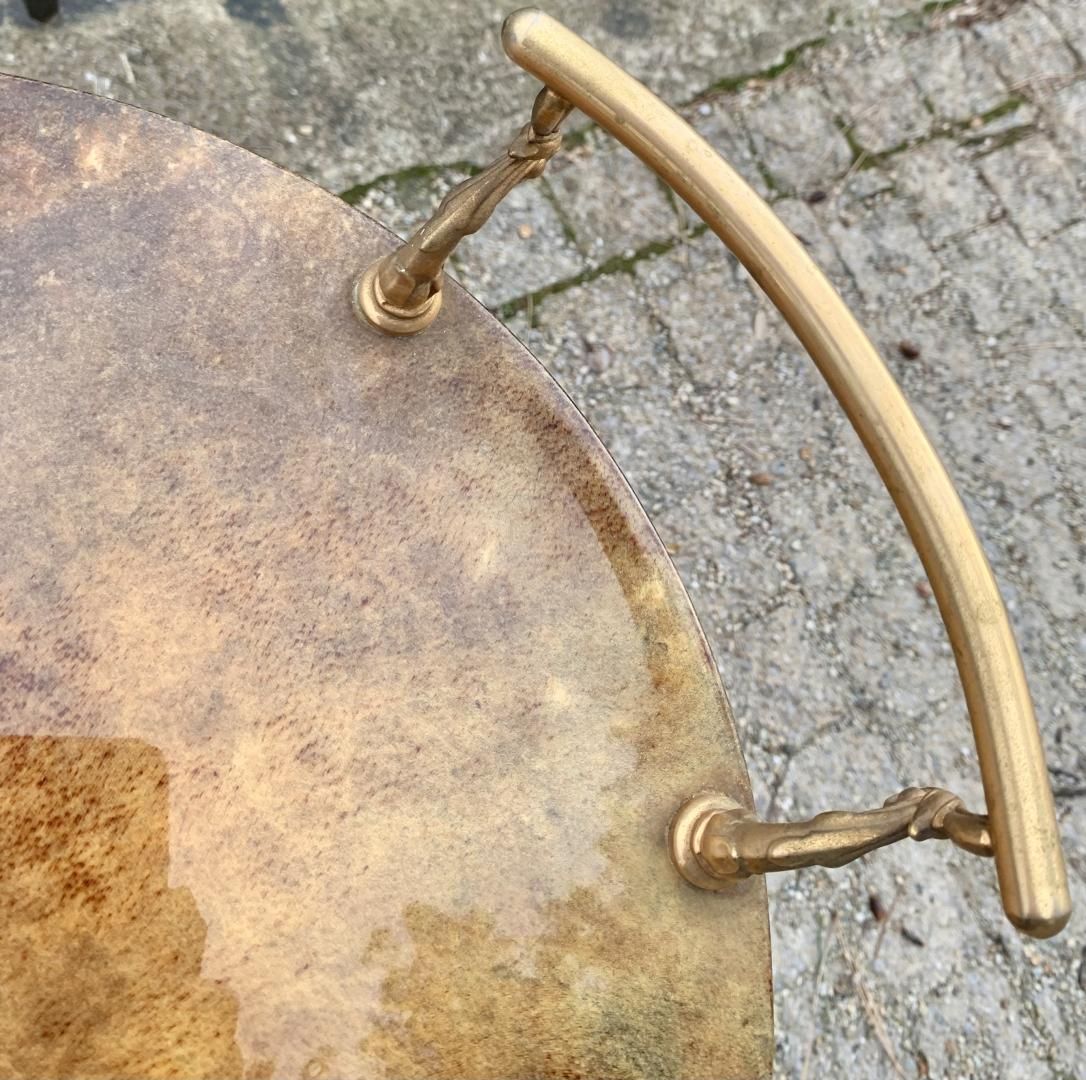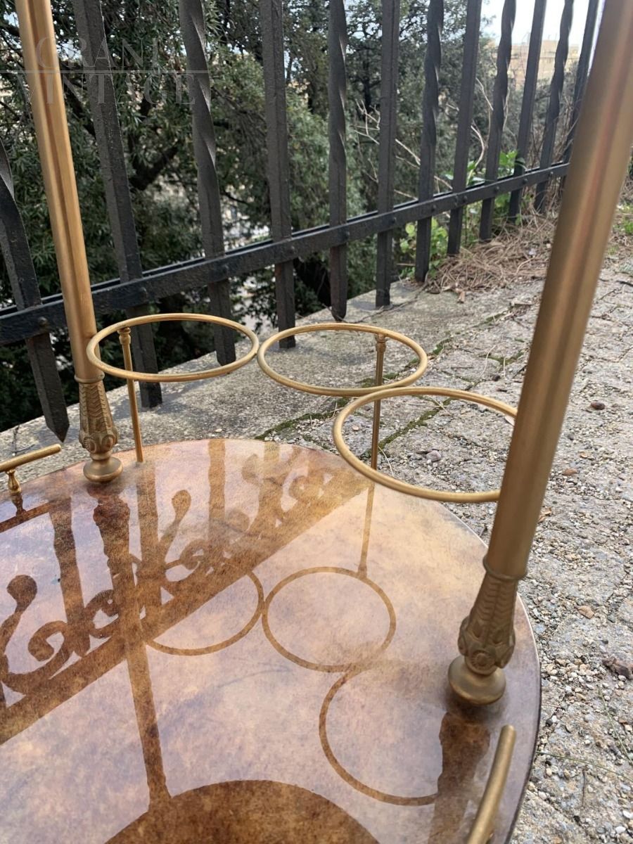 Carrello bar di Aldo Tura in ottone e pergamena invetriata