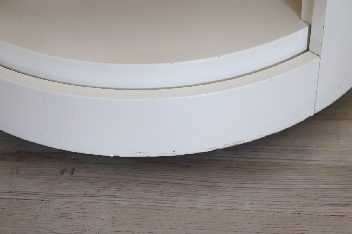 Carrello bar space age a cilindro in legno bianco, anni '60