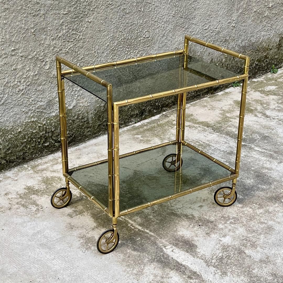 Carrello bar vintage in ottone effetto bambù, anni '60