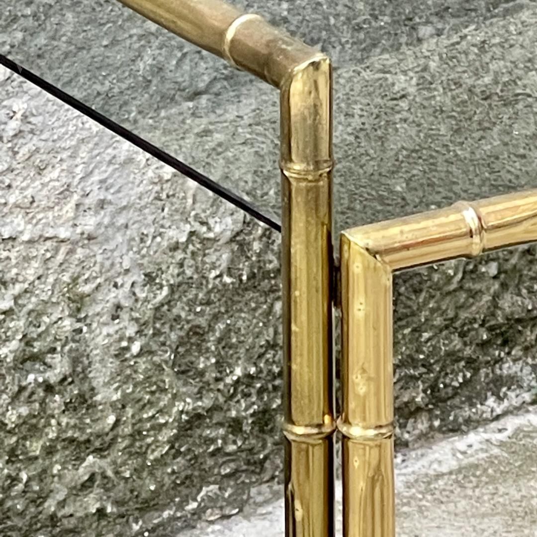 Elegante carrello bar Mid-Century in ottone effetto bambù, con vassoio in vetro removibile, Italia anni '60.