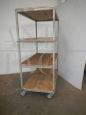 Carrello da ceramista anni '70 con ripiani in legno