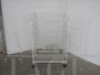 Carrello espositore vintage industriale in rete metallica bianca dotato di 2 ceste a cassetto grandi di 50 x 50 cm con altezza 18 cm e 3 ceste piccole di 50 x 50 cm con altezza 8 cm. Le ruote sono originali. In buone condizioni, disponibili due pezzi, il prezzo si riferisce al singolo pezzo.