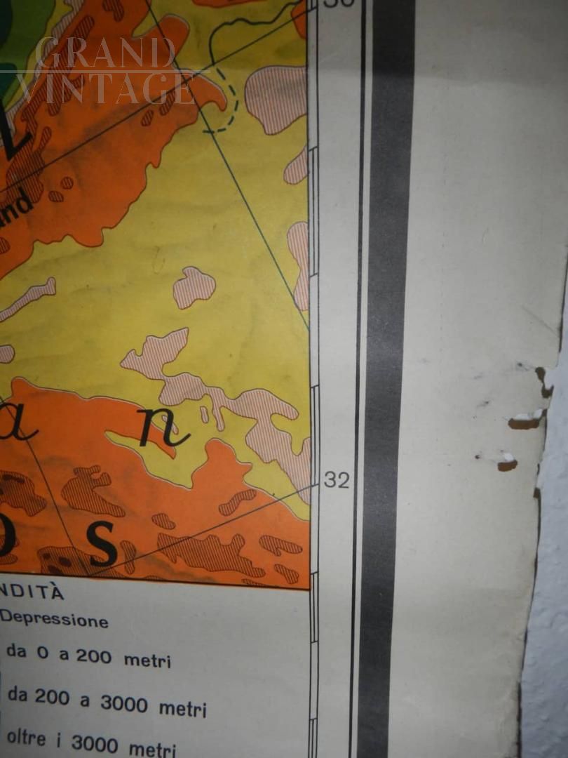 Cartina vintage dell’Europa fisica prodotta da Vallardi Industrie Grafiche Lainate MI nel 1990, in buone condizioni, con segni d’uso e piccoli strappi riparati.