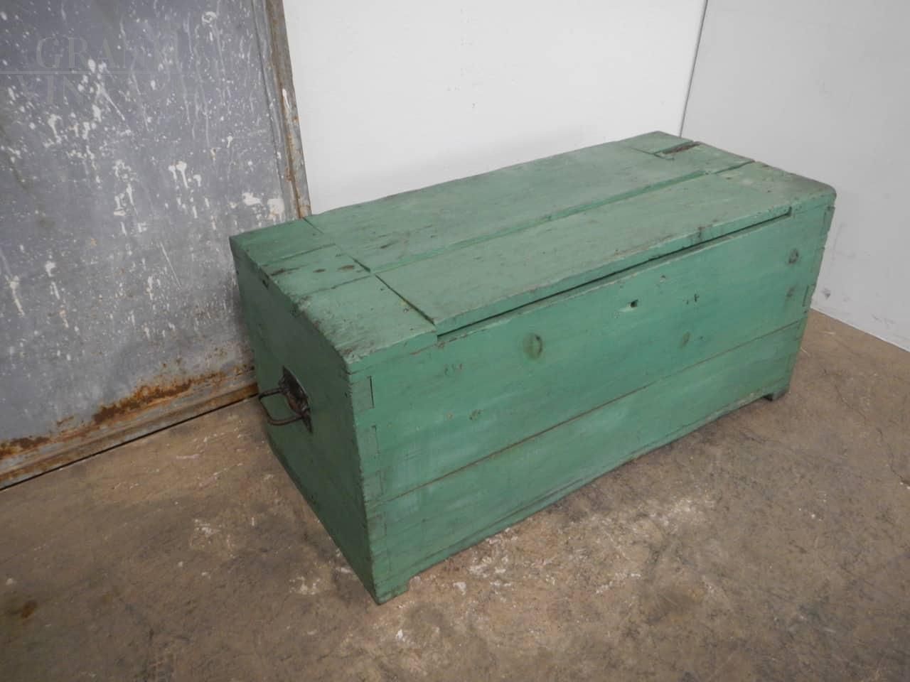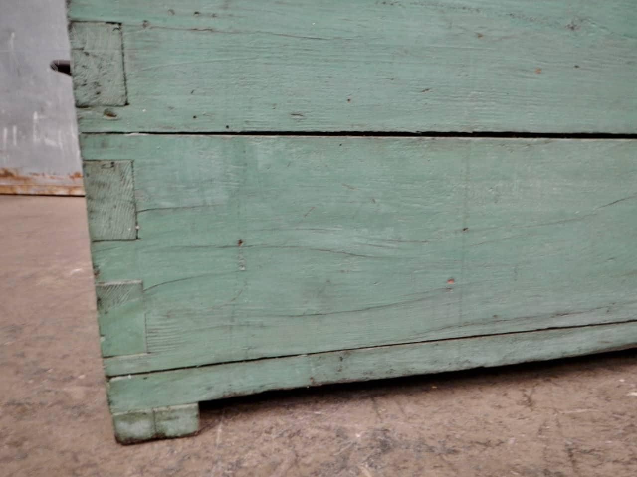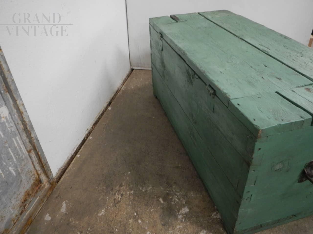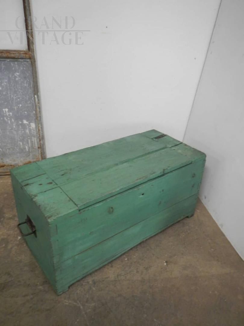 Cassa vintage in legno di larice laccato verde all’esterno e in larice naturale all’interno, Italia anni '50, in buone condizioni, pulito e lasciato in patina originale.