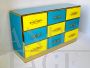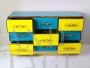 Cassettiera design con 9 cassetti in vetro giallo e azzurro