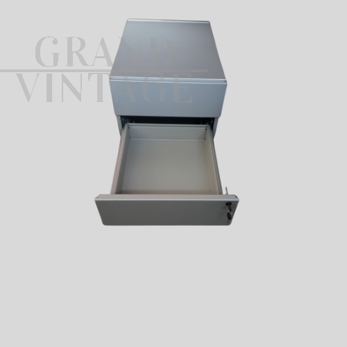 Elegante, minimalista, straordinariamente funzionale. La cassettiera LessLess firmata Jean Nouvel per Unifor è un’icona del design contemporaneo: un perfetto equilibrio tra rigore architettonico e tecnologia discreta. Realizzata interamente in alluminio, questa cassettiera a tre cassetti – di cui uno pensato per le cartelle – unisce leggerezza visiva e solidità costruttiva. Il cassetto superiore è dotato di chiusura con chiave, mentre sul retro si trova uno schienale a ribalta per l'alloggiamento ordinato dei cavi. Linee nette, superfici compatte e un’estetica senza tempo: la visione progettuale di Jean Nouvel si riflette appieno in questo pezzo, dove ogni dettaglio è studiato per fondere funzionalità e stile, senza mai rinunciare all’eleganza. L'oggetto non presenta un marchio visibile.