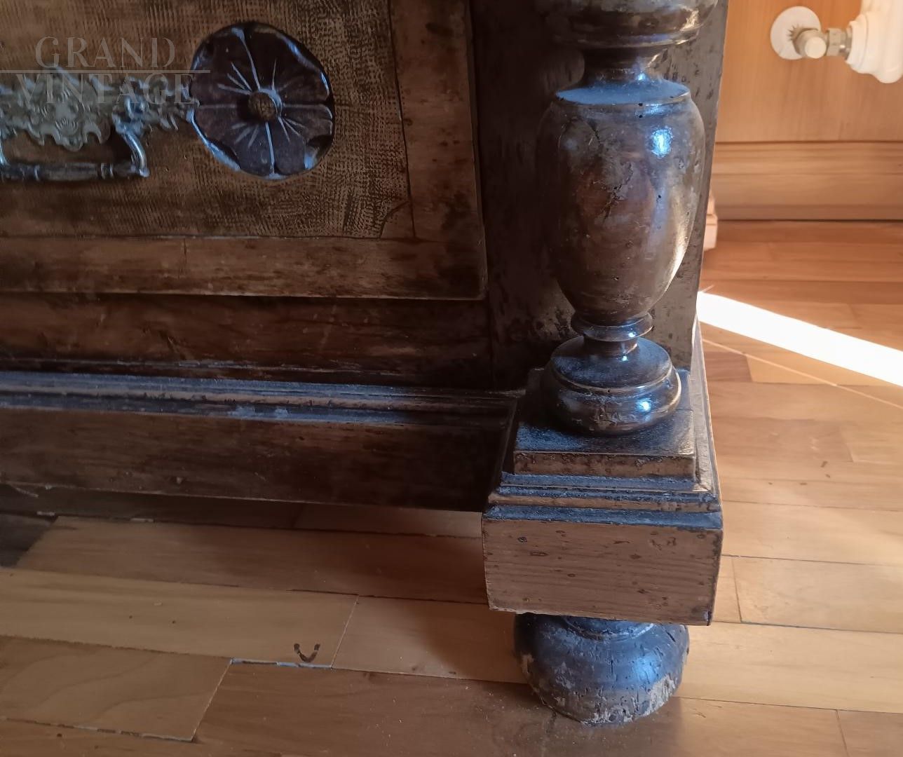 Cassettone comò antico in noce intagliato dei primi del '900.