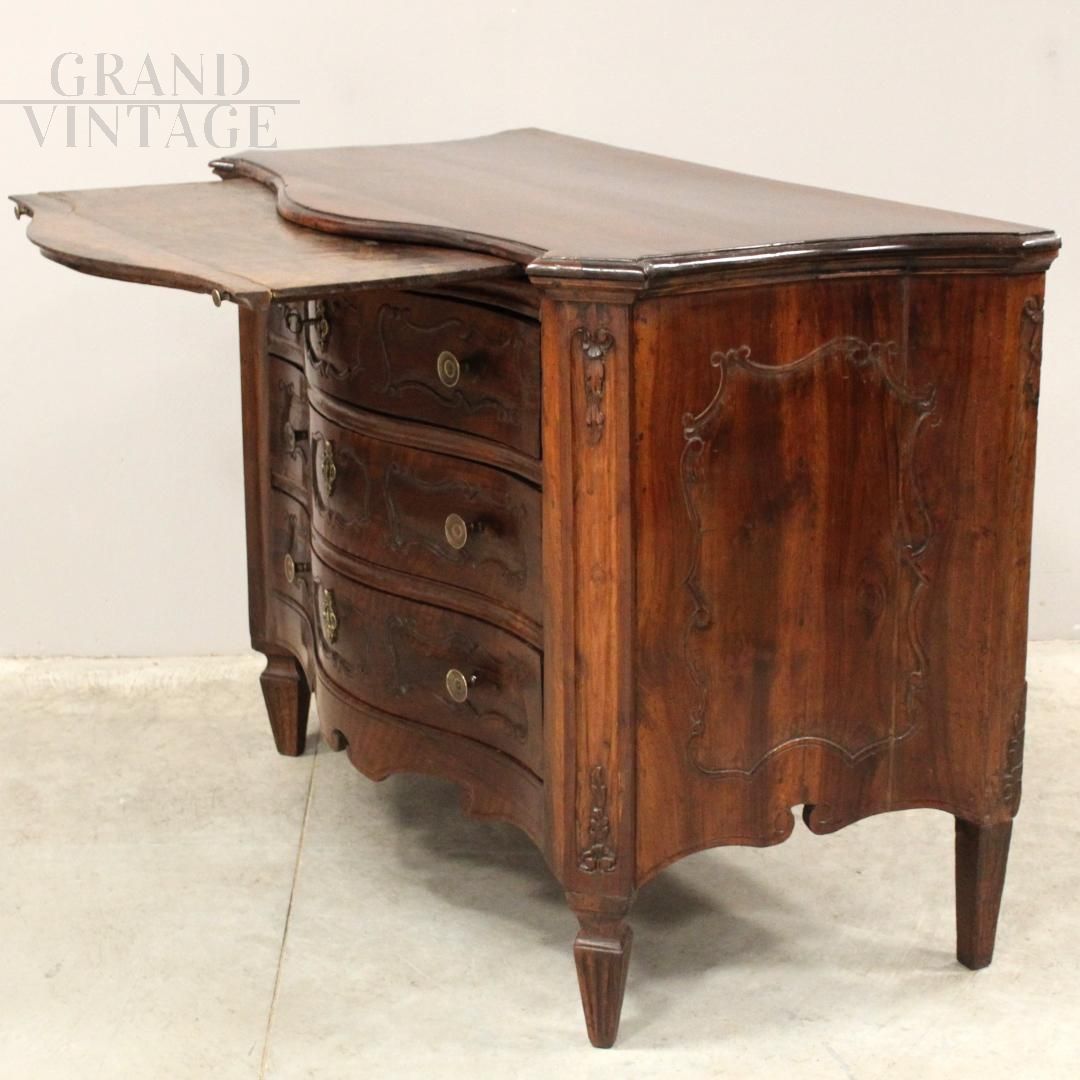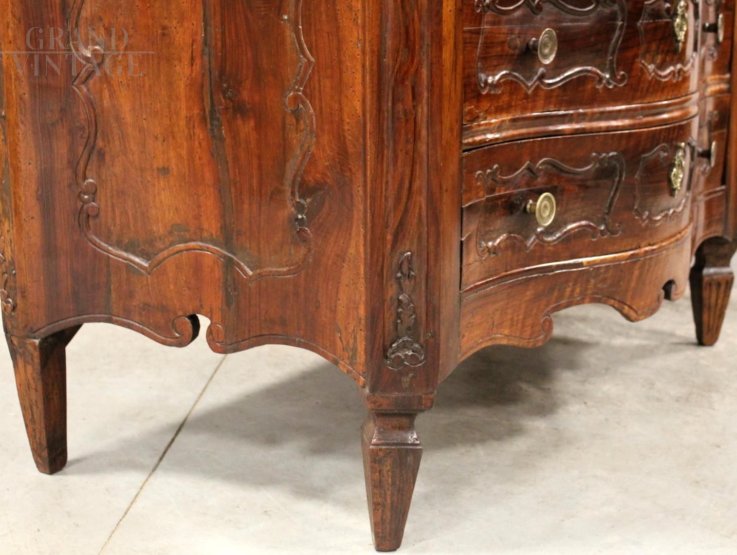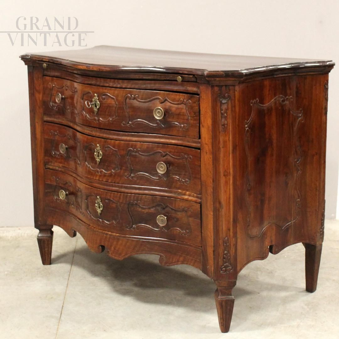 Cassettone comò Luigi XVI in noce intagliato, Italia '700