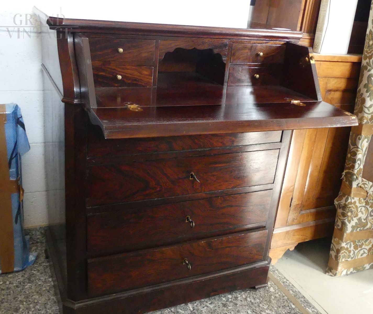 Cassettone francese con ribaltina, fine '800